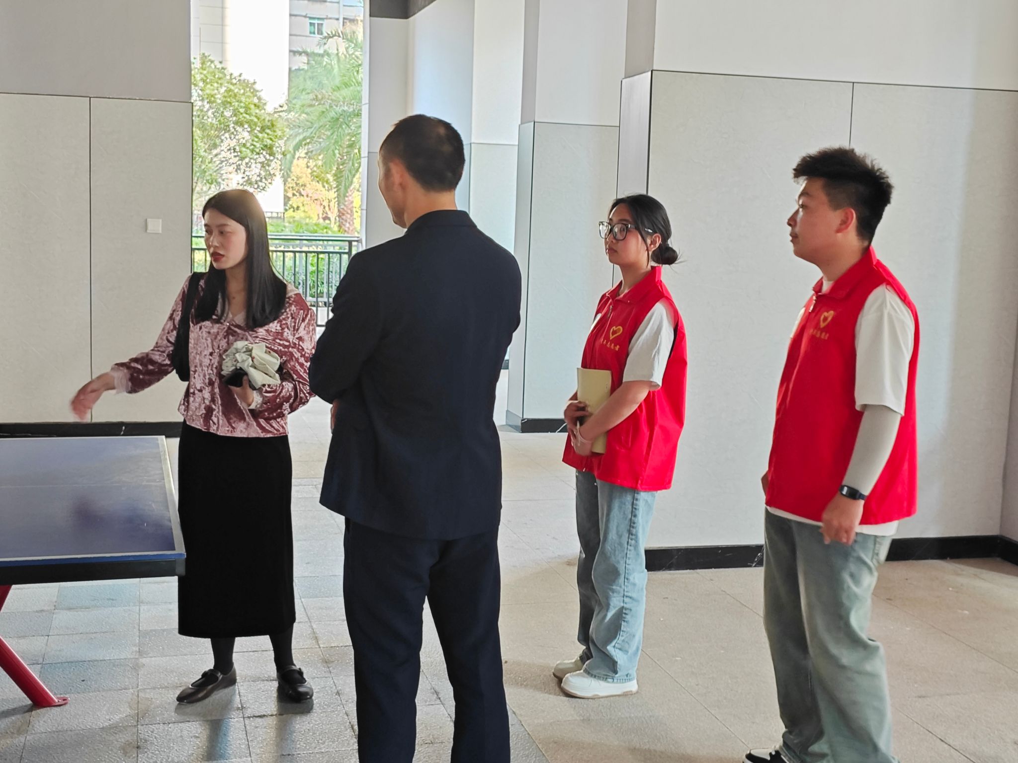 首先,在文昌府小区物业易经理表示:“此次合作意向达成是社区文化建设的创新尝试,希望智能工程学院志愿者与小区物业形成合力,为居民搭建科学健身、互动交流的平台。”志愿支队指导谭老师强调:“体育锻炼公益基地是志愿服务与社区需求的深度结合,我们将以‘常态化、特色化’为目标,为进一步打造可持续的校地共建品牌。”接着,在易经理带领下参观了小区的场地和运动设施。志愿支队队长黄禹杰围绕共建“体育锻炼公益基地”对于小区志愿活动规划提出了两个主题,如“老少同乐”趣味运动会,设置“乒乓接力赛”“短跑比赛”“亲子跳绳挑战”等低门槛项目,吸引老年居民与青少年同场竞技。“运动健康讲堂”,通过情景剧表演、互动问答等形式,向居民普及科学运动与慢性病防控知识,发放自制《家庭健身手册》。