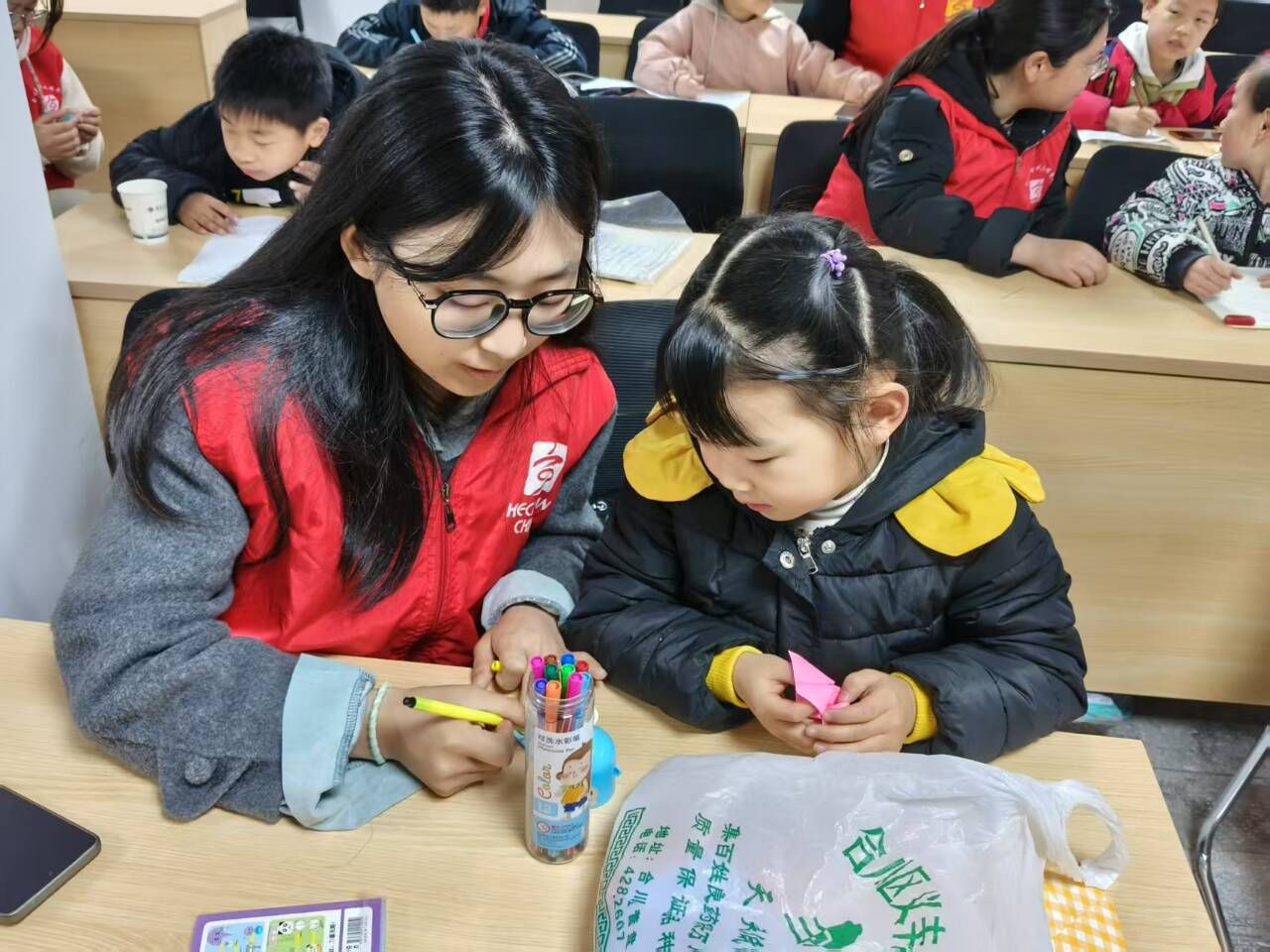 故事讲解结束后,志愿者们根据组织孩子们年龄和课业情况进行分组。有功课任务的孩子安静地完成学业,而年龄较小的孩子在志愿者的悉心带领下,投入到充满创意的画画和折纸手工活动中,制作各种不同手工作品。孩子们在活动中展现出极高的热情和创造力,他们的作品不仅色彩鲜艳,而且富有创造力。