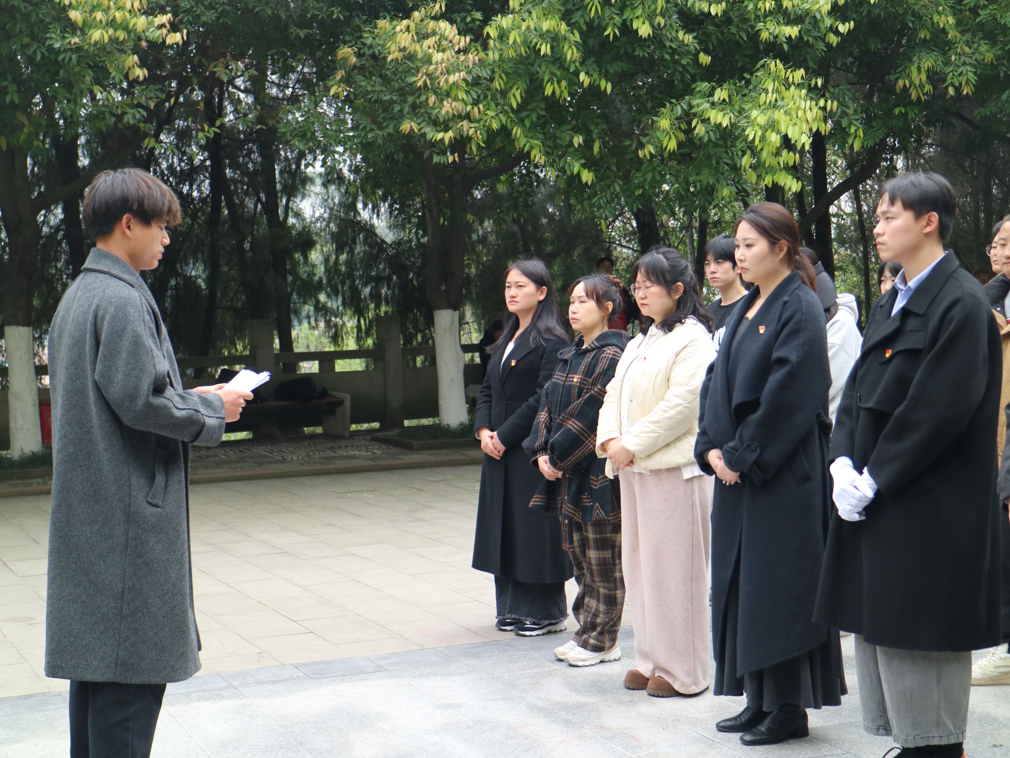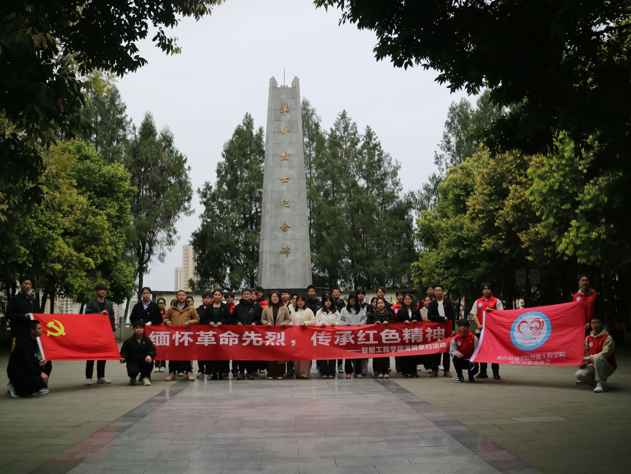 清明寄哀思,行动慰忠魂。为弘扬爱国主义精神,传承红色基因,倡导文明祭扫新风尚。2025年4月2日,智能工程学院学生党支部及青年志愿者协会在合川区人民公园革命烈士纪念碑举办“缅怀革命先烈,传承红色精神”清明节祭扫活动。教师代表、党员代表、志愿者代表等共计四十余人参与,活动通过默哀致敬、先烈事迹分享、集体宣誓、文明宣传等环节,引导青年学子传承红色基因,勇担时代使命。