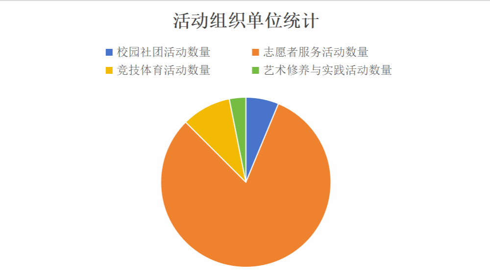 由这个月的数据来看,智工的志愿者服务活动参与率最高,可见,智工的小伙伴对志愿者服务活动有着浓厚的兴趣,这正是作为大学生的我们应该具备的。在完满教育活动中,每一个活动都能帮助我们和外界进行交流,丰富我们的内涵,让我们的内核更强大。在这些完满活动中,我们可以在专研学业的同时也可以看看校园中其他人丰富多彩的生活,丰富自己,做到德、智、体、美、劳全面发展。
