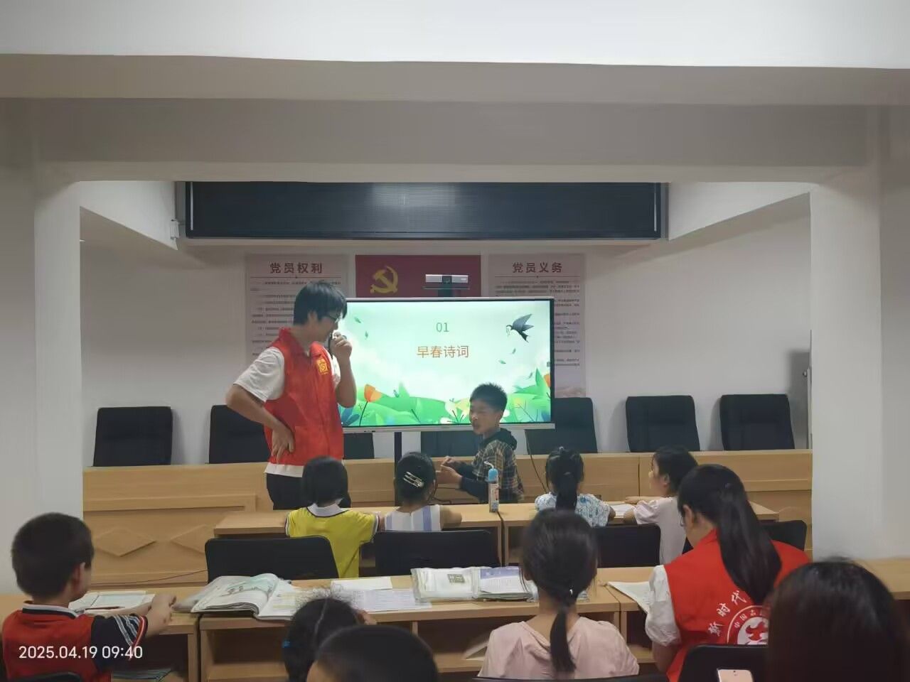 2025年4月19日,“品经典学国学”志愿服务团队走进凉亭子社区儿童之家,为15名小朋友带来了一场春日诗词鉴赏及安全教育活动。