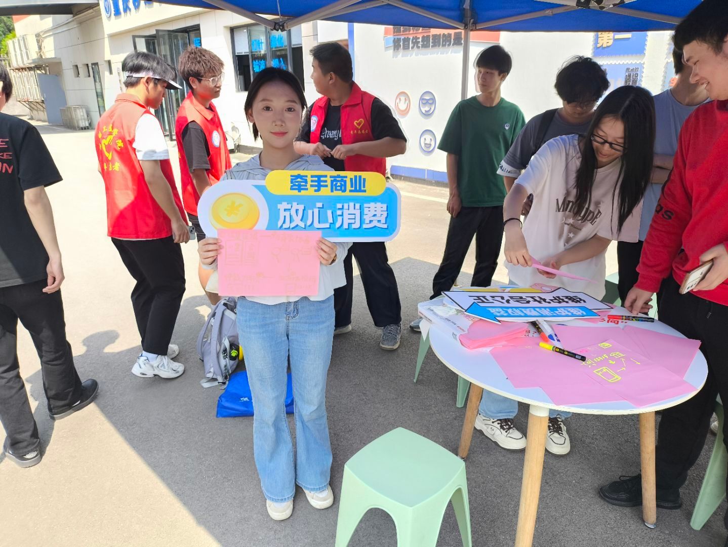 活动伊始,机械4班的学生在校园人流密集的文峰食堂附近区域设立了宣传点。学生们热情地向过往师生讲解活动内容,宣讲内容涵盖常见消费陷阱、消费者法定权利及维权途径与方法等实用信息,声情并茂讲述典型消费侵权案例,吸引众多学生驻足观看、交流讨论。在宣传过程中,机械类4班的学生充分发挥专业优势,以通俗易懂的语言讲解复杂的消费权益知识。面对学生提出的关于网购商品质量问题、线下商家霸王条款等疑问,他们耐心解答,提供合理建议和应对策略。部分学生结合亲身经历,分享成功维权经验,使大家深刻认识到维护自身消费权益的重要性和可行性。