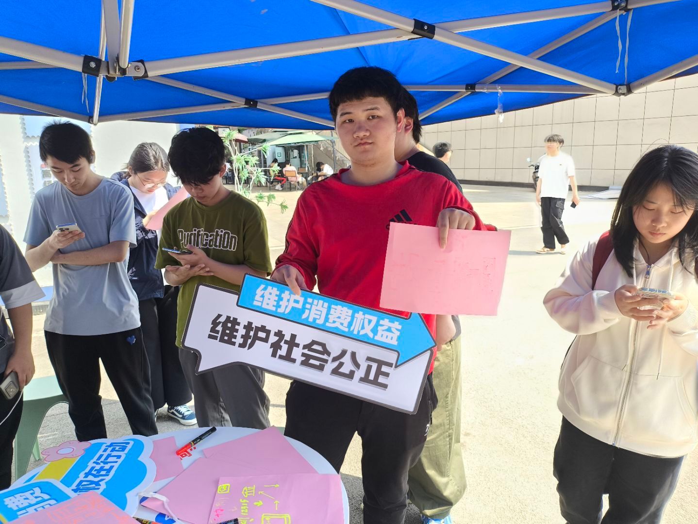 为提升学生的消费维权意识,普及消费者权益保护知识,2025年4月9日,重庆移通学院智能工程学院2024级机械类4班精心策划并实施了一场主题为“维护消费者权益”的特色活动,于文峰食堂下开展。该活动内容丰富多样,吸引了众多学生的积极参与,于校园内营造了关注消费权益、倡导理性消费的良好氛围。