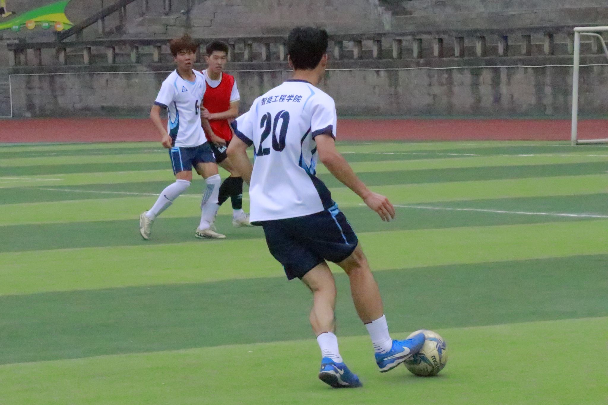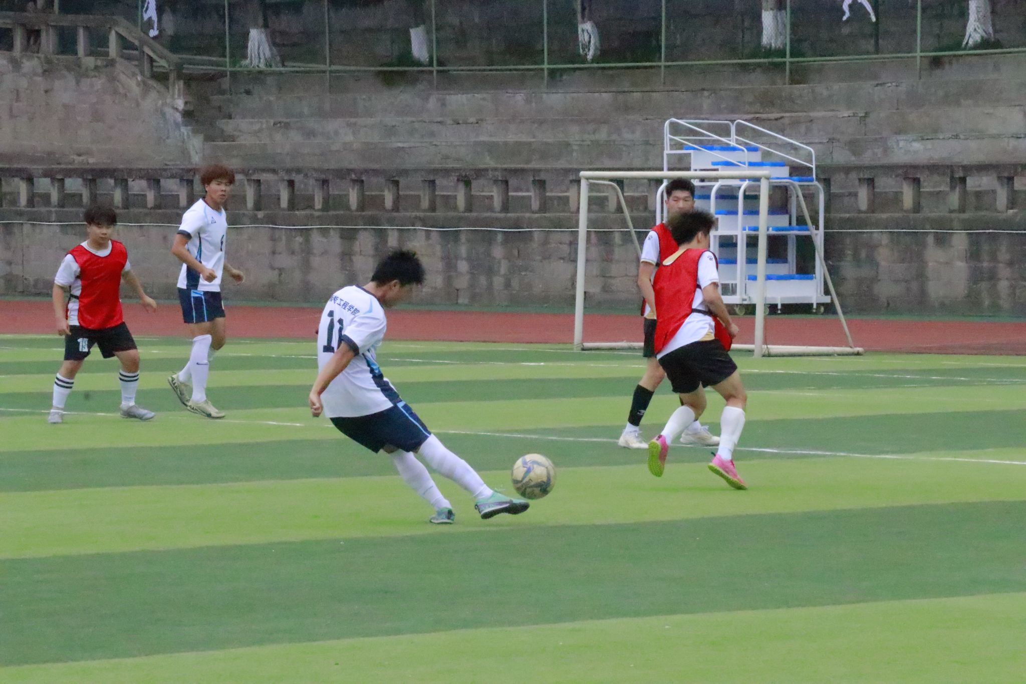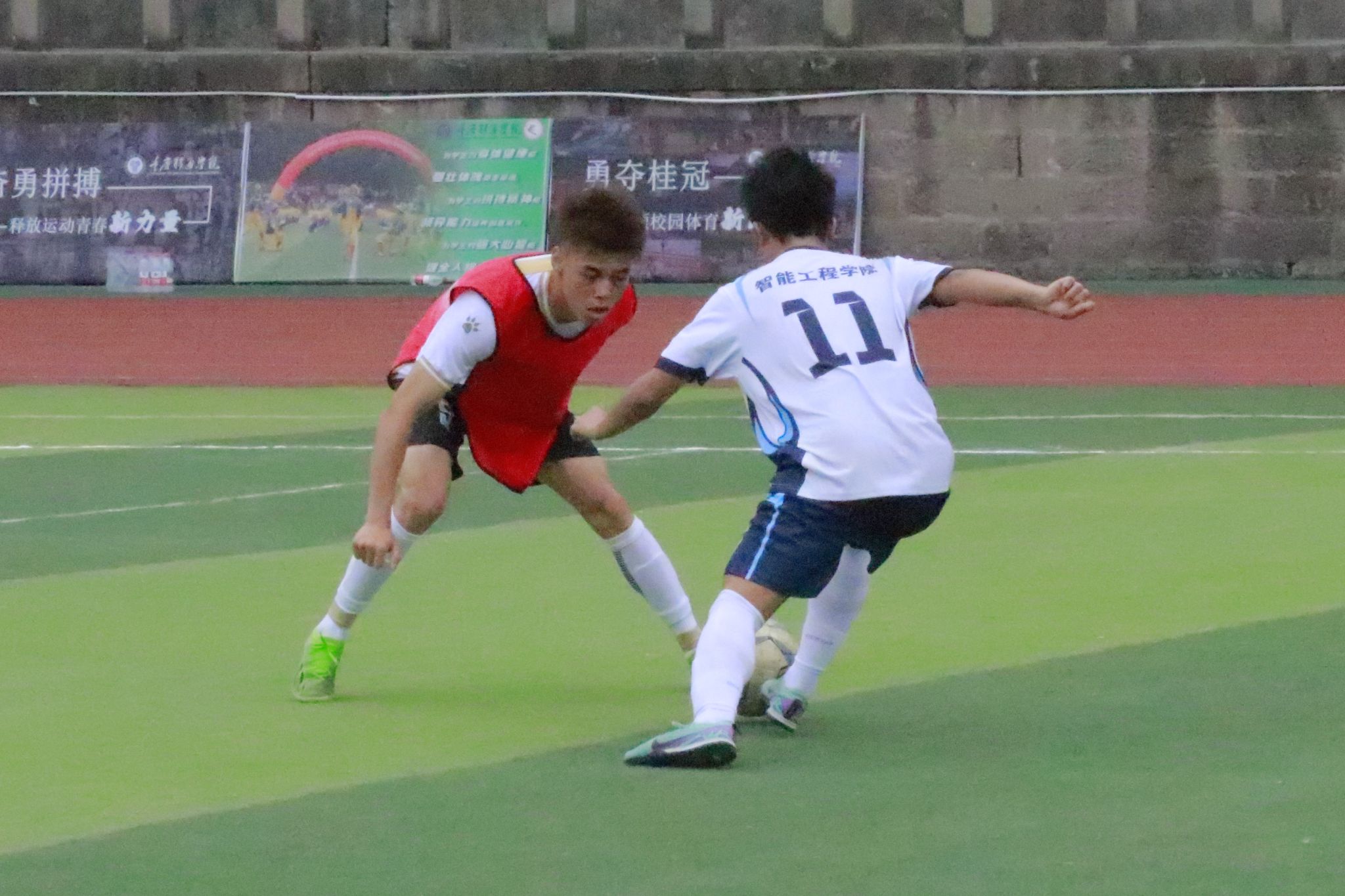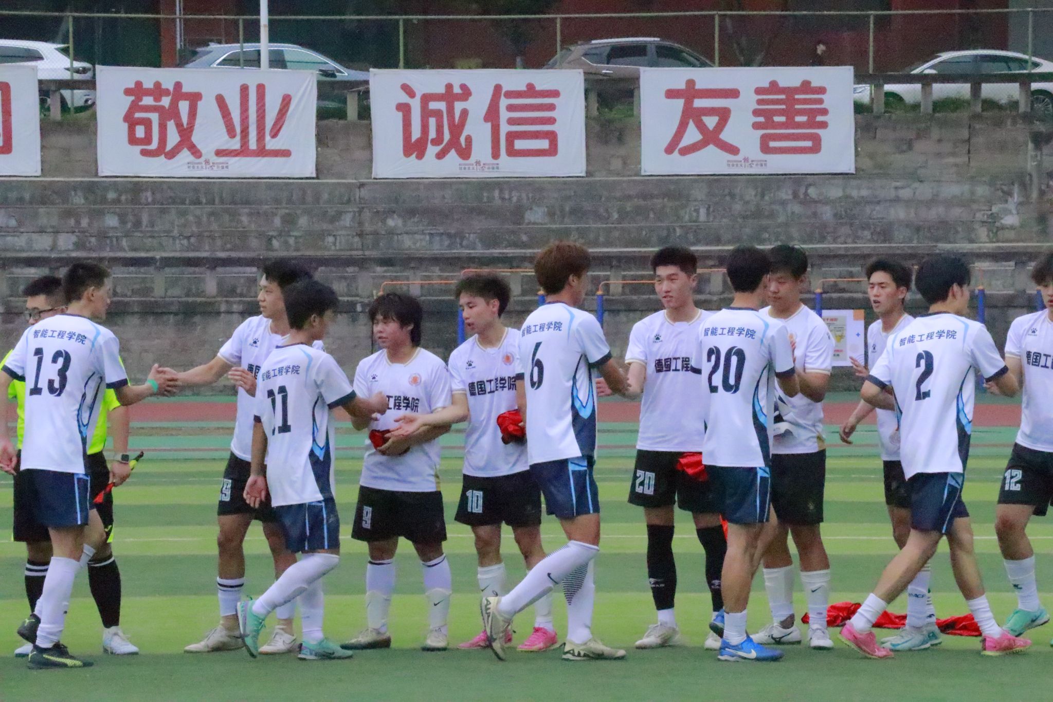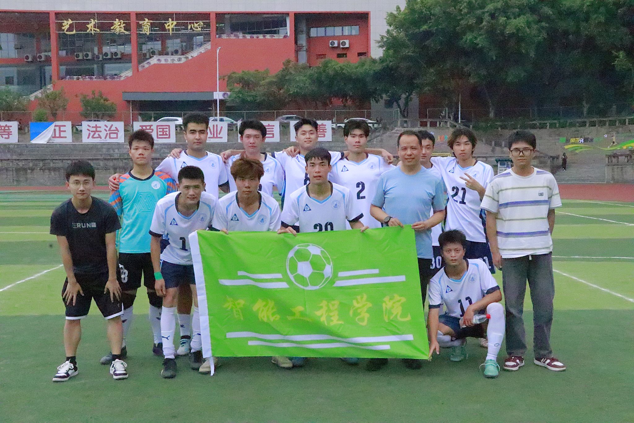 比赛期间,智能工程学院代表队充分展现出了顽强拼搏的体育精神和默契协作的团队力量。在球场上,球员们奔跑如飞,每一次传球、每一次射门都扣人心弦。精彩的过人技巧、迅猛的进攻态势和强悍的防守表现,一招一式都彰显出精湛的足球技艺 。每支队伍都积极准备,全力以赴。在下半场中,球员们的精彩配合更是让现场观众尖叫连连,高效率的传导让足球在队员脚下灵活穿梭,一次次精准的射门和门线救险,将比赛的紧张氛围推向高潮。