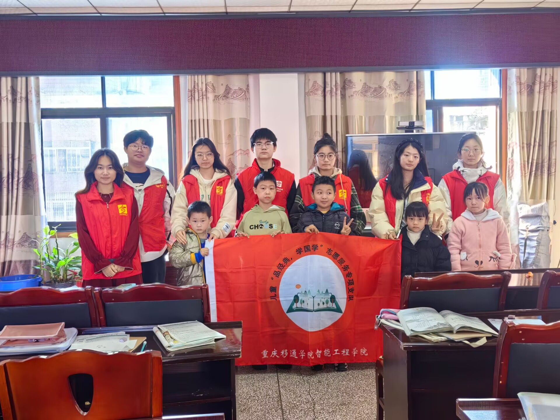 2024年 11 月 19 日,“品经典·学国学”志愿支队与小学生们共同庆祝建党节,开展了一场丰富多彩的红色主题活动,引领孩子们走进党的光辉历史。