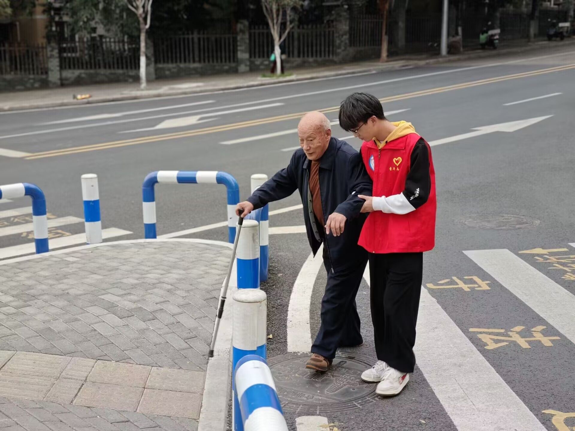 上午9时起,志愿者们分驻路口四个方向,在交警指导下有序开展服务。他们手持“文明礼让 平安出行”“红灯稍等 安全长存”等提示牌,目光专注地观察往来行人及车辆。遇有市民试图抢行红灯或越线等待时,志愿者迅速上前,以标准手势配合温和提示,引导其退回安全区域。