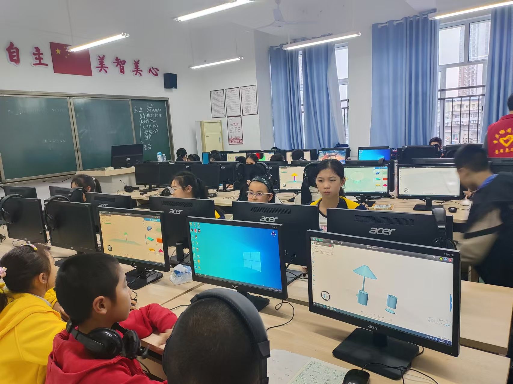 2024年11月1日,志愿者们去到了南津街小学进行了3D打印相关的课程教学。第一节课,志愿者们先让同学们下载3D建模软件,接着,便开始了本节课的讲解——水杯的制作,志愿者们将每一步都细致地讲给同学们,然后给同学们大量的时间让他们自己动手实操,每一位同学都成功地制作出了属于自己独一无二的水杯。第二节课,志愿者们进行了难度较大的台灯建模的教学,先给同学们介绍了制作台灯需要用到的步骤,接着,提出相关问题并让同学们讨论回答,然后,志愿者们让同学们合作制作台灯并进行展示,最后,同学们都完成了两节课的目标,收拾好电脑桌椅,同学们有序离开教室。