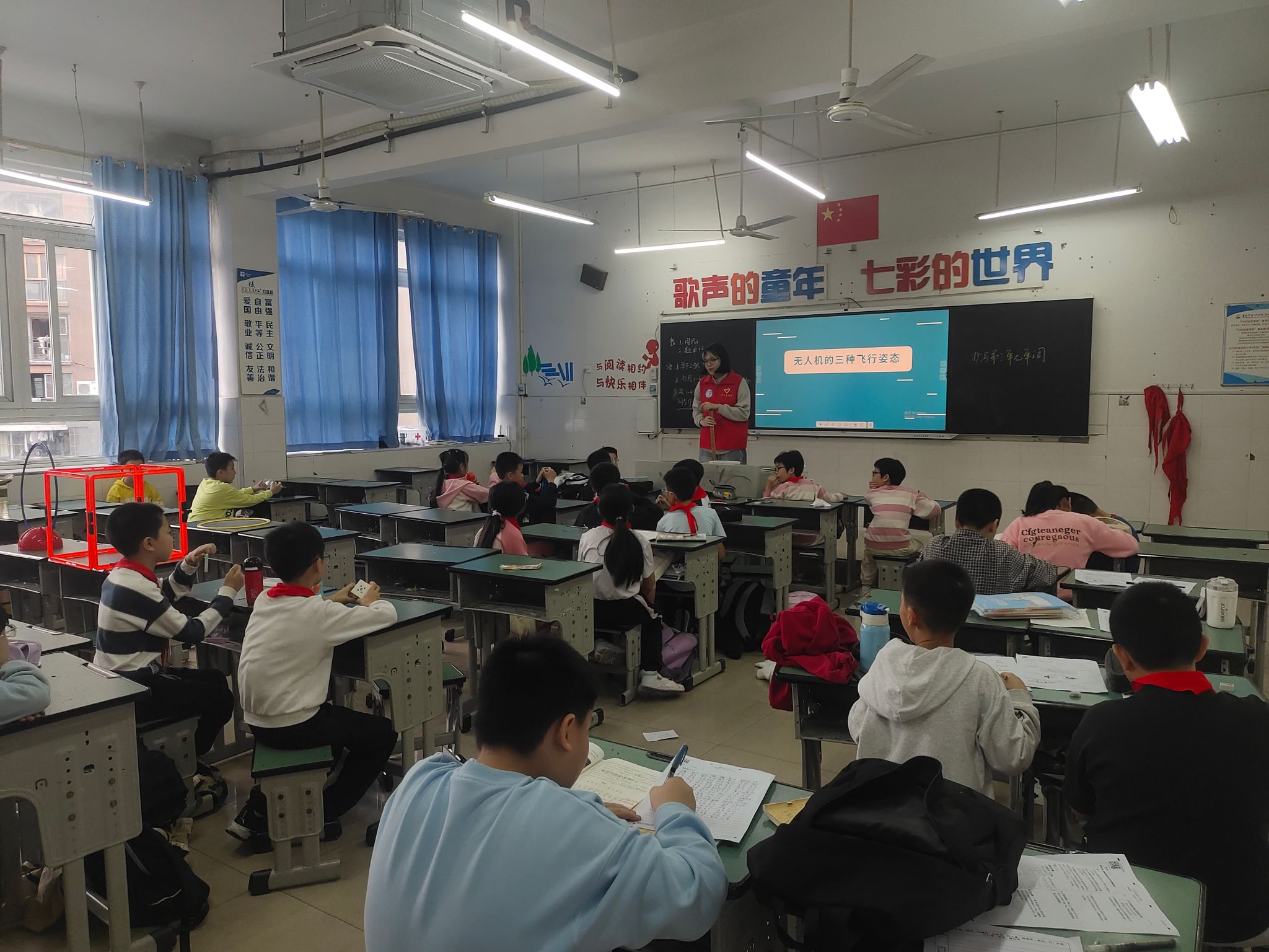 2024年11月1日,志愿者们去到了南滨路小学进行无人机的教学,第一节课志愿者给同学们介绍了无人机比赛的内容,让同学们熟悉了比赛项目后一个一个进行无人机展示。当同学们在展示过程中遇到问题时,志愿者也积极提供帮助,每一位同学都完成的十分到位。第二节课志愿者给同学们讲解了通信的发展历程,通过提问的方式让大家更加牢固地掌握了知识,同学们非常积极地配合,每个人对课堂都有了更深的理解。