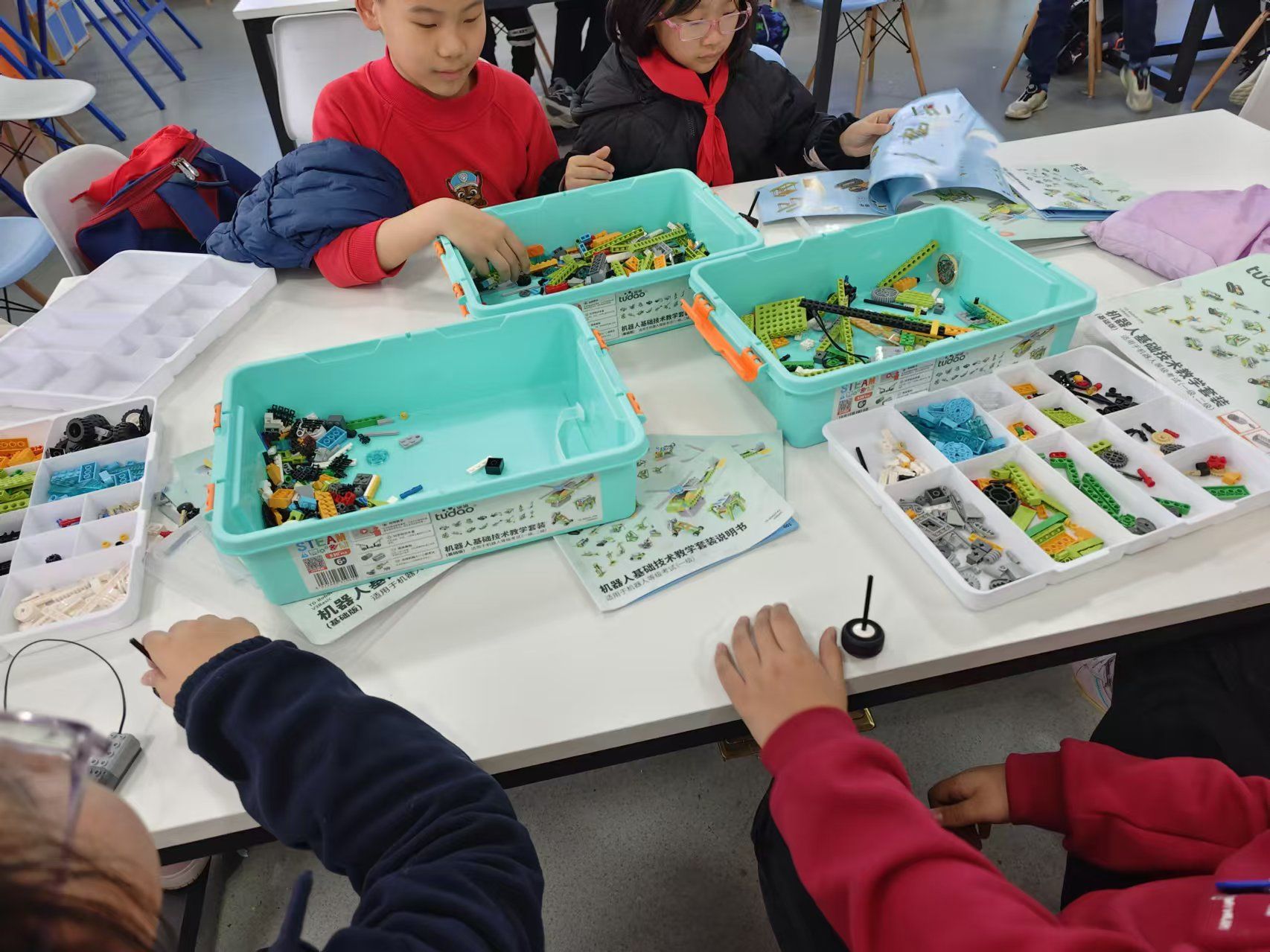 今天在南滨路小学进行了动力机器人的相关的课程教学。今天在趣味满满的机器人课堂上,支队员带领着同学们一起学习了第7课——旋转的陀螺。课堂一开始,支队员先是通过生动形象的图片、通俗易懂的视频,深入浅出地给同学们讲解了陀螺仪的相关知识,让大家了解到陀螺仪在生活中的诸多奇妙应用,以及它那独特又复杂的构造和运作原理。支队员把提前准备好的材料分发给每一位同学,然后一步一步地示范搭建步骤,同学们也都迫不及待地动起手来,有的小心翼翼地拼接零件,有的皱着眉头思考如何让结构更稳固,还有的已经成功搭好,正开心地试着让自己的陀螺旋转起来,整个教室都充满了欢声笑语,大家在实践中对这堂课所学的知识有了更深的体会呀。
