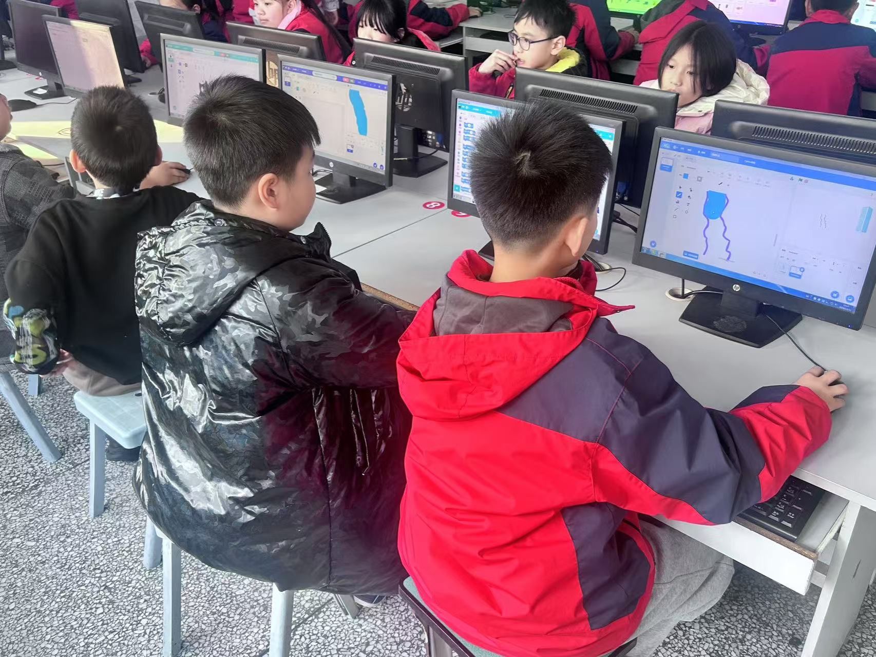 2024年12月11日,志愿者们去到学昌门小学对小学生进行了基础编程方面的指导。同学们们对编程兴致勃勃,志愿者们在课上给他们讲解了如何制作动态长江索道,学习了新的脚本。同学们也用自己的理解,通过不同的编程程序,制作出我们的最终目标。下课时,让同学们收拾好电脑桌椅,指挥同学们有序离开教室