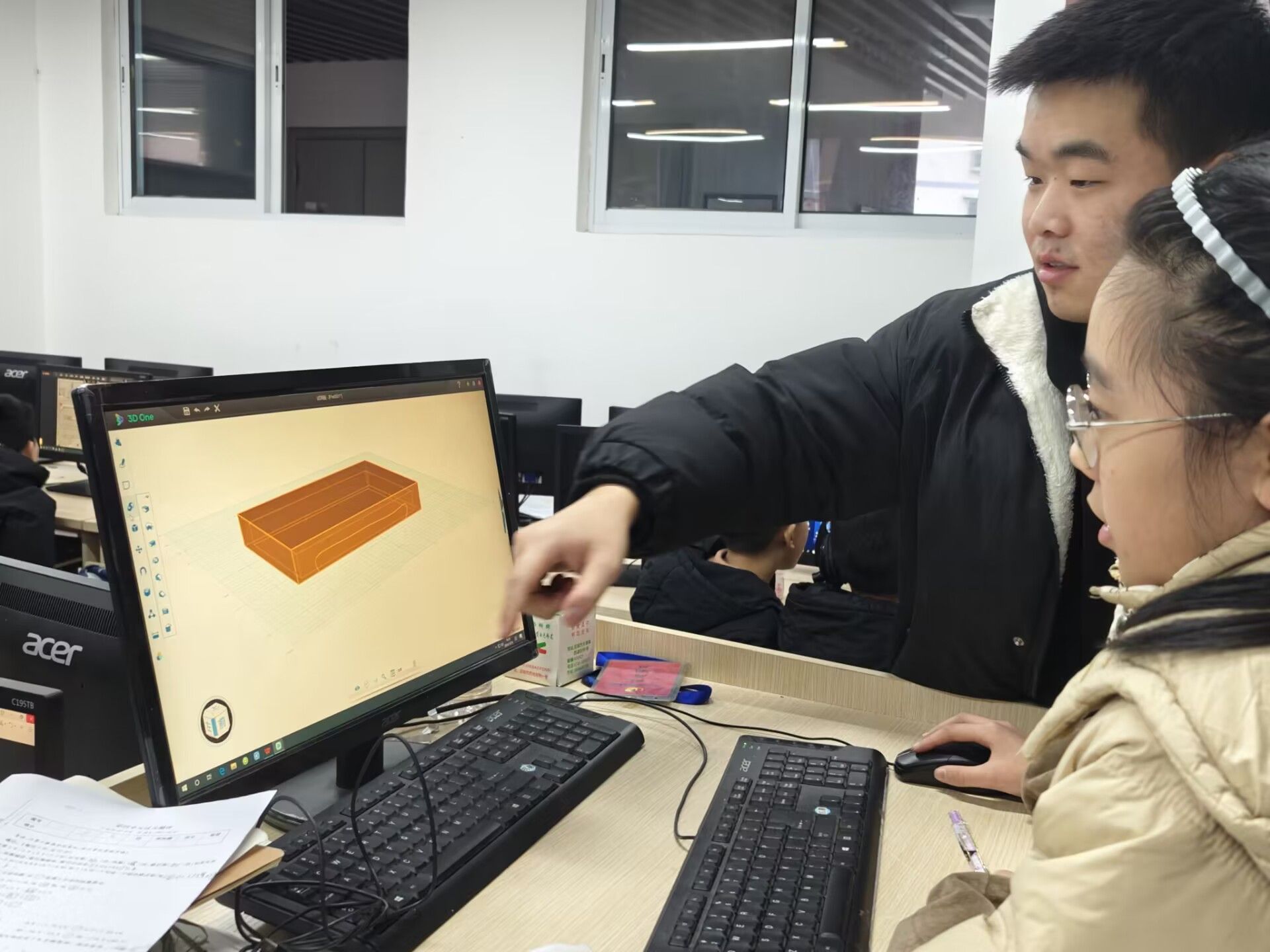 2024年12月13日,志愿者们去到了南津街小学进行了3D打印相关的课程教学。在使用 3Done 软件制作床的模型过程中,同学们在课程初始表现出强烈的好奇心与探索欲,面对 3Done 软件的界面,他们积极尝试各种工具的功能,通过点击、拖拽等操作熟悉软件环境。在构思床的模型时,同学们们的创意层出不穷,有的学生想要设计一张带有梦幻星空图案的儿童床,将自己对宇宙的幻想融入其中;有的则侧重于床的功能性,计划制作一张可折叠、方便收纳的多功能床,以满足小户型居住需求。例如,有学生提出在床的底部添加隐藏式的储物抽屉,利用软件的拉伸和布尔运算功能,巧妙地构建出抽屉的形状与空间布局,展现出对生活实际需求的思考与创新思维。快下课时,提醒同学们收拾好桌面,带走垃圾,本次活动圆满结束。