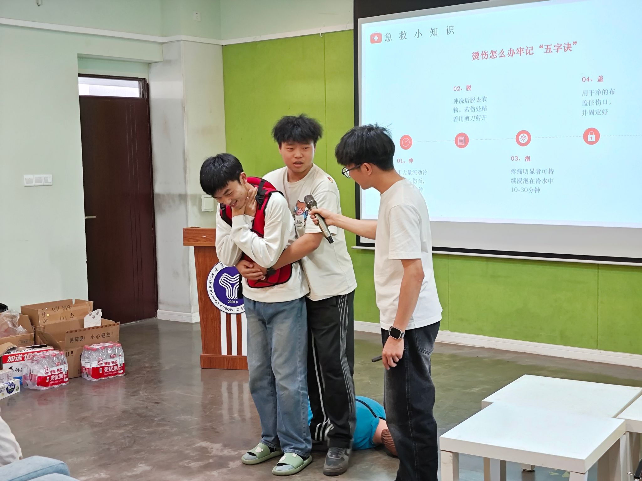 为提升学生的安全意识与自救互救能力,智能工程学院电气工程及其自动化专升本07支部于2025年4月16日下午15:00在双栀书院多功能影音室开展了一场主题为“守护安全·安全同行”的安全教育活动,团支部书记张国春作为本次活动主持人。本次活动内容丰富实用,涵盖心肺复苏术、海姆立克急救法、烫伤急救法等多个生活中常见危险场景的应对方法。