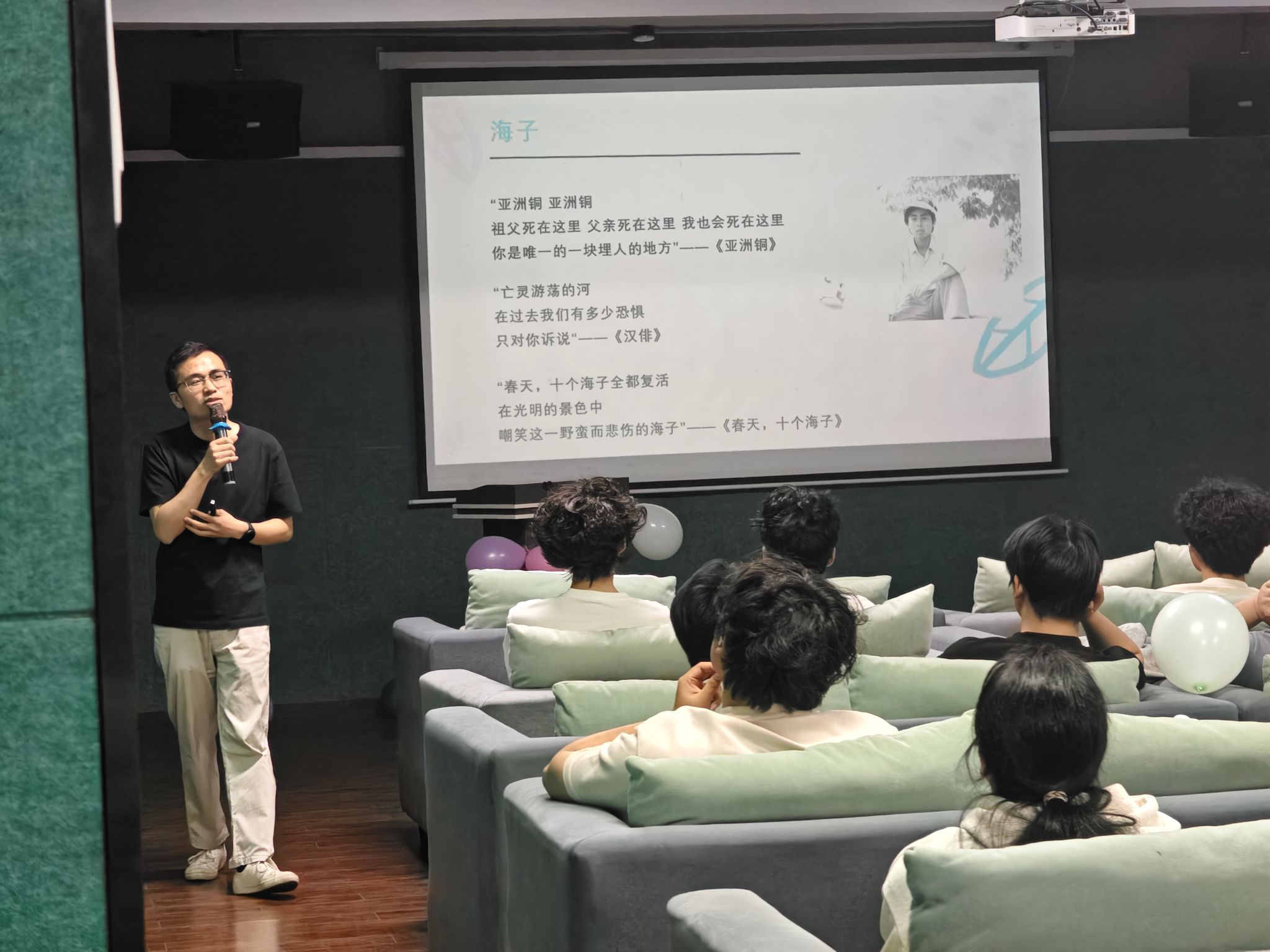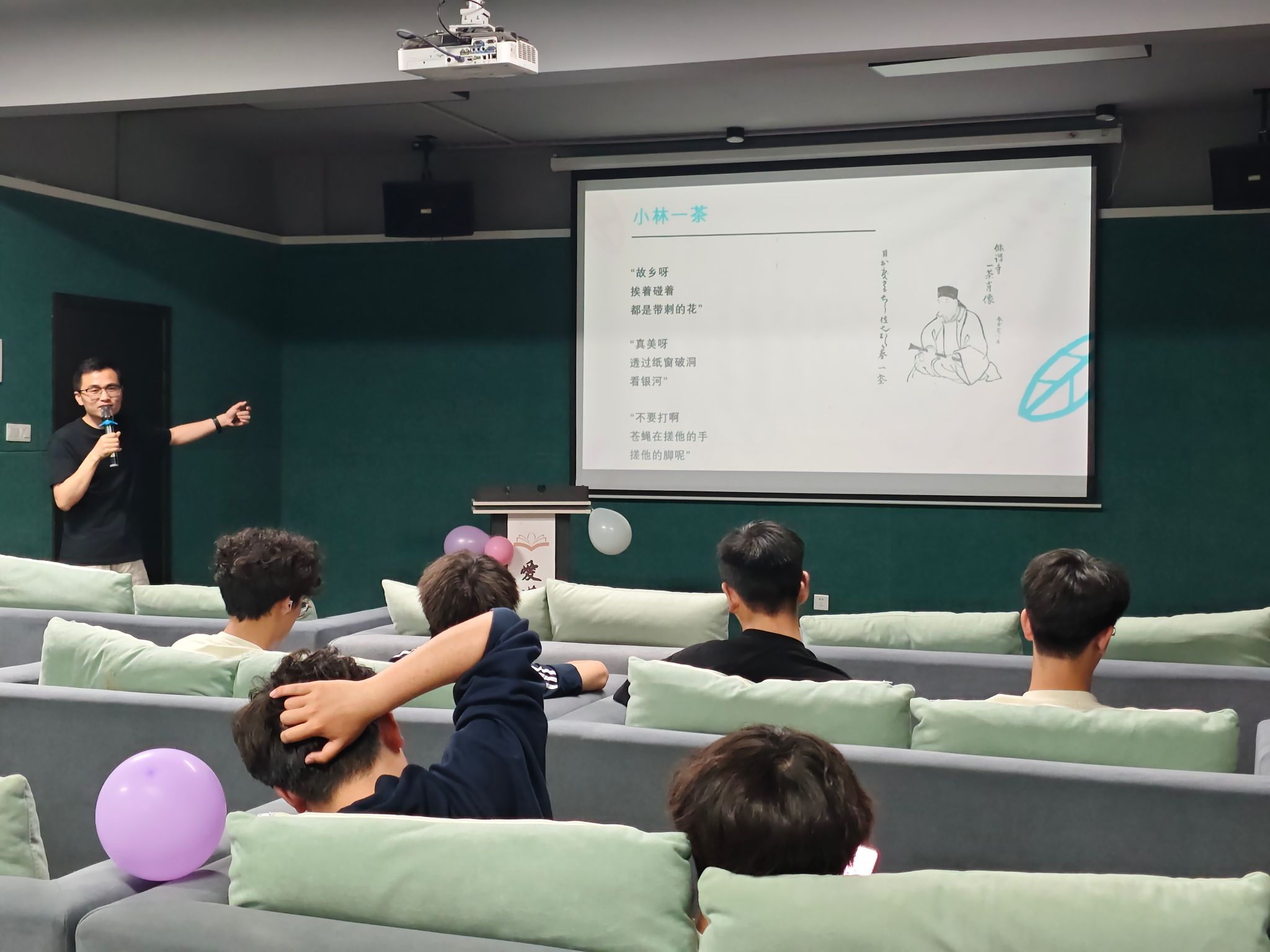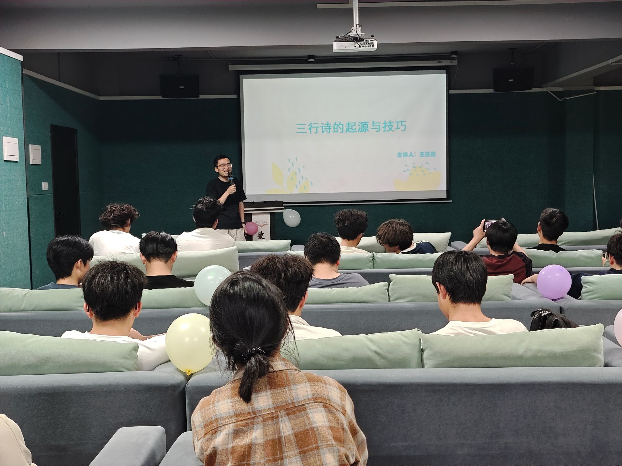 4月9日下午16时许,在爱莲多功能影音室中,活动正式拉开了序幕。主持人以热情洋溢的话语,向到场的同学们介绍了本次活动的背景与目的。在学校全面推进素质教育、注重学生全面发展的背景下,此次活动旨在激发学生的文学创作潜能,让同学们通过简洁的行诗形式,表达对校园生活的热爱与感悟。