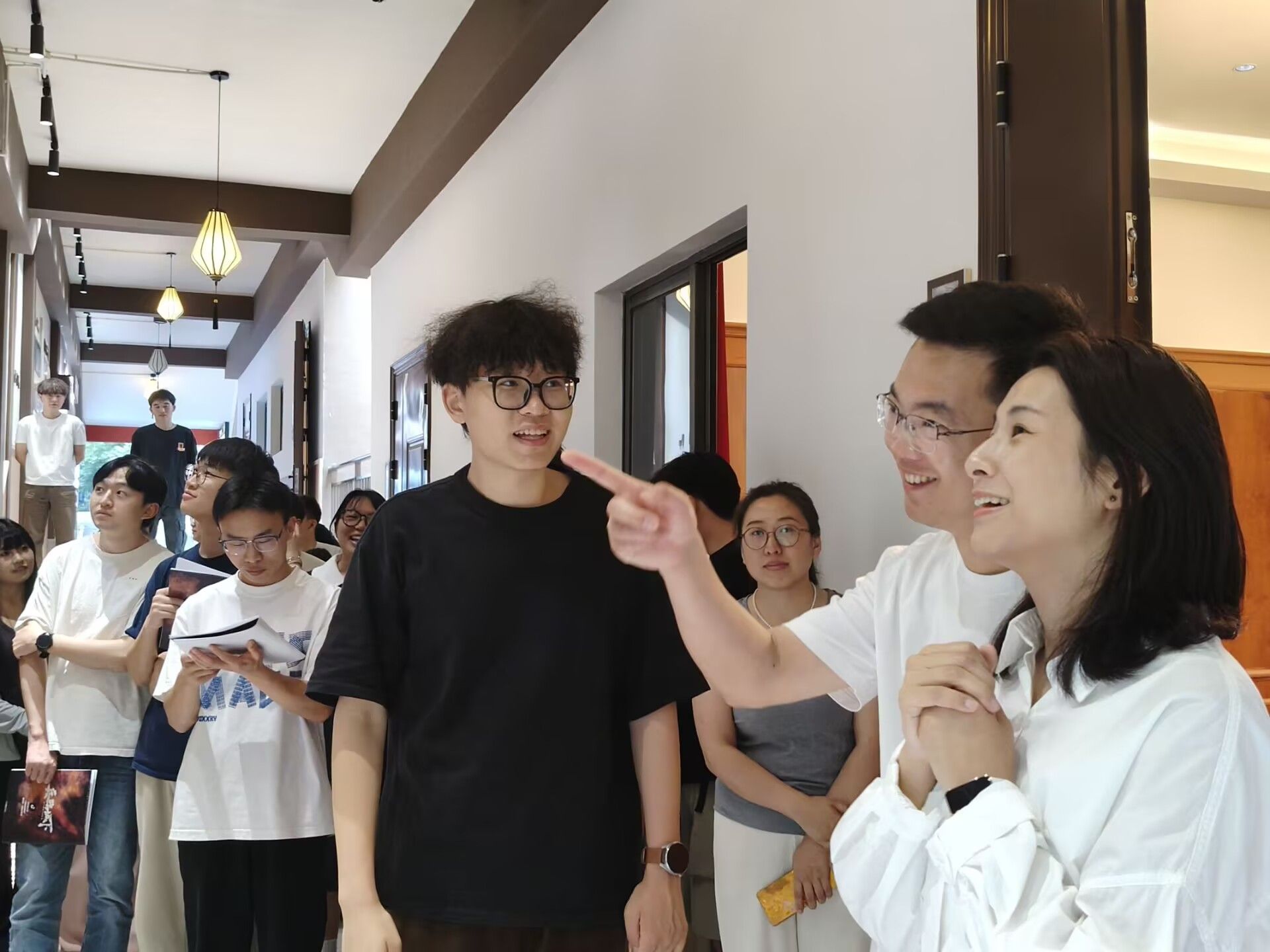 沉浸式场景搭建,开启历史穿越之门。活动开始前,老师和学员们在工作人员引导下有序参观廊桥苑。复古的布景、逼真的道具陈设,瞬间将现场氛围拉回革命年代。工作人员结合场景细节,生动介绍了剧本杀这一教育创新形式的发展脉络、创作理念及在思政领域的应用价值,让学员们对即将开启的 “红色穿越” 充满期待。