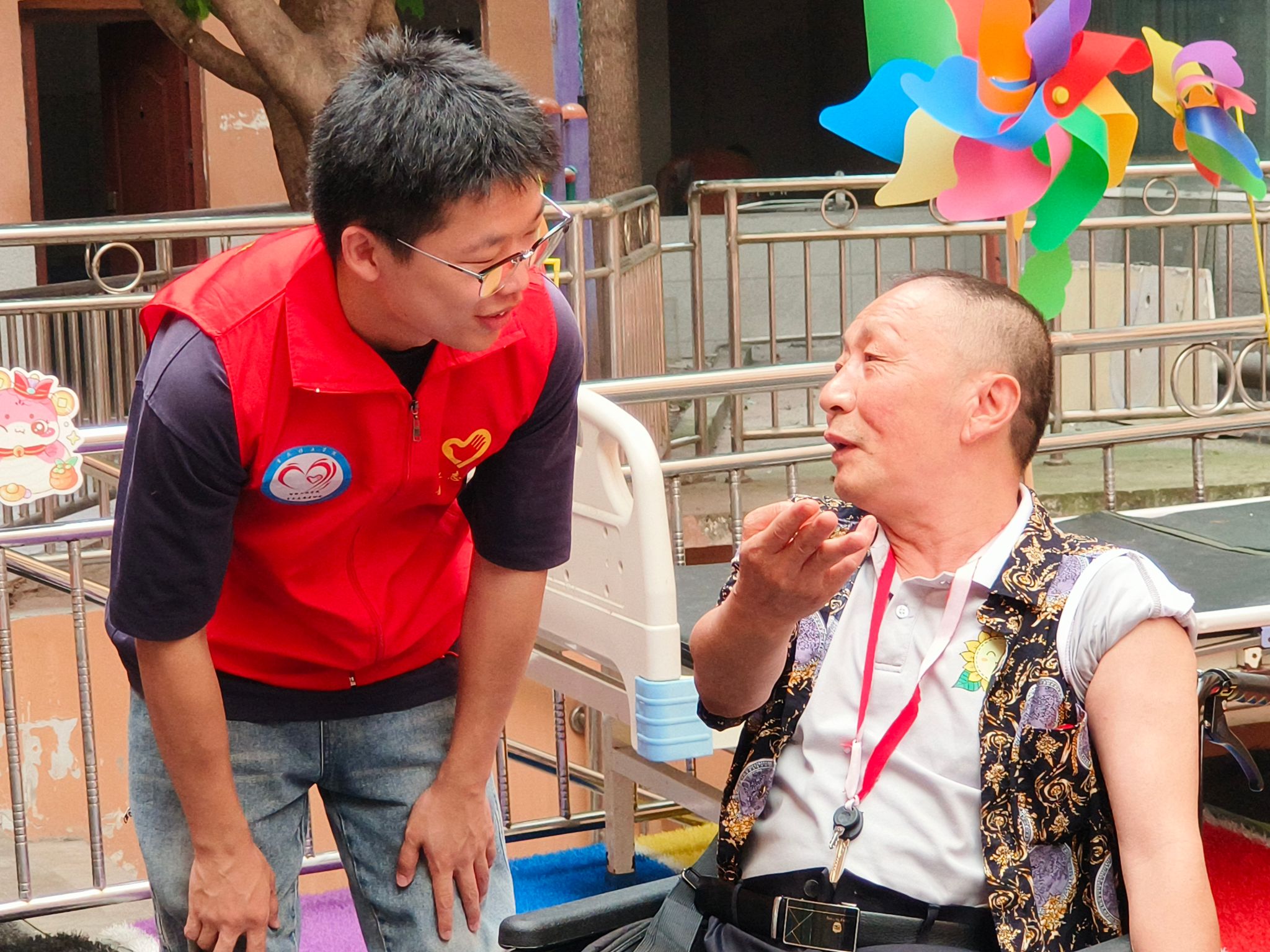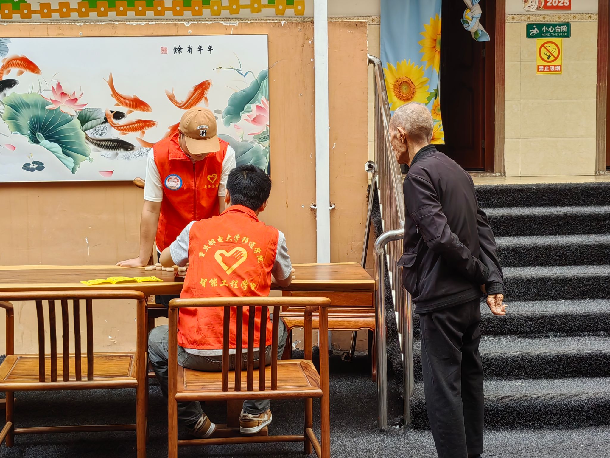 除了贴心的慰问,志愿者们还发挥各自所长,为老人们提供了多样化的义务服务活动。志愿者和老人们两两组队共同坐在院内的椅子上聊着过去发生的事情,一方面师志愿者们教授老人如何使用电子产品,另一方面是老人们和志愿者在棋盘之上“七进七出”。