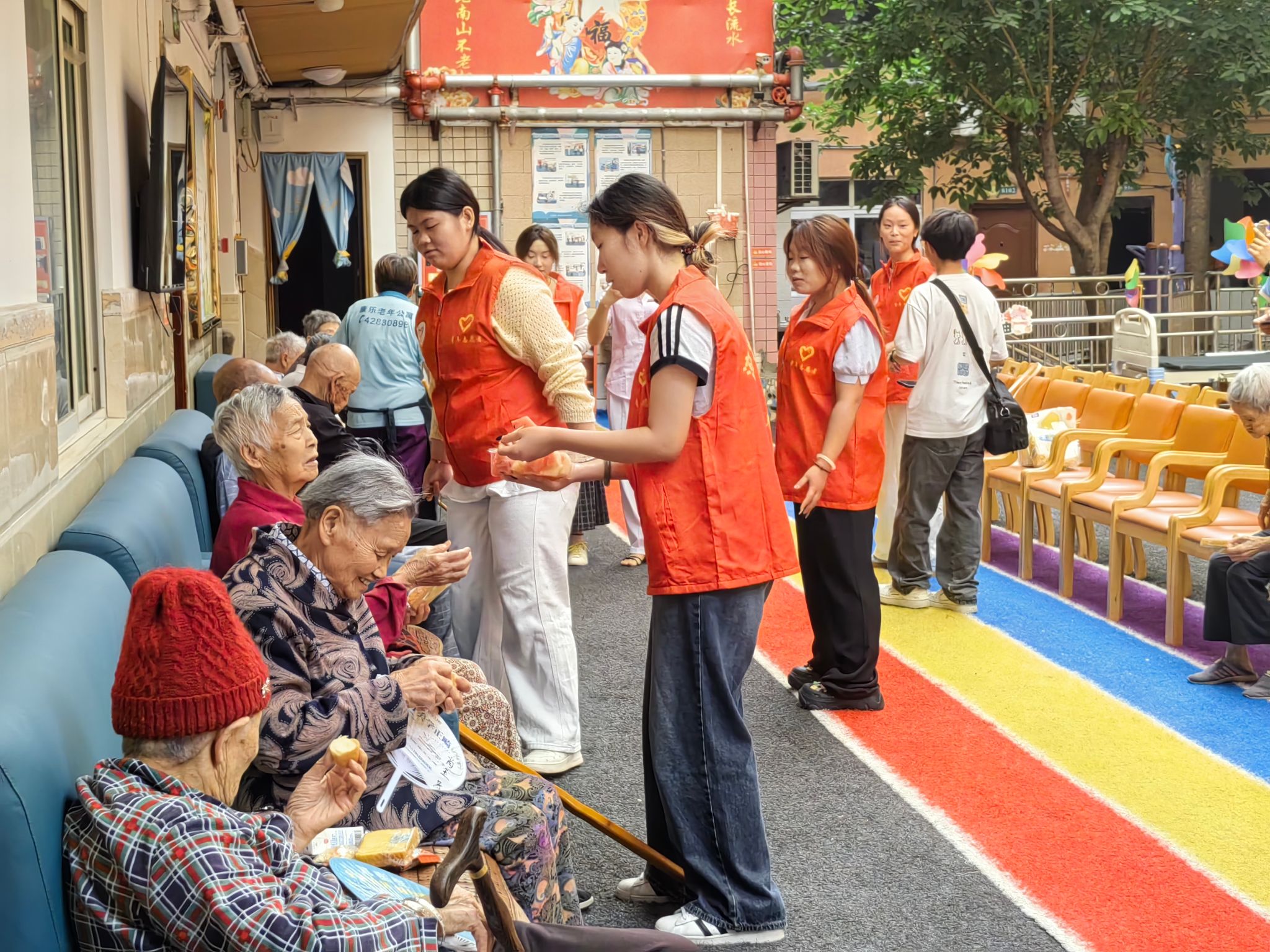 活动现场,一盒盒新鲜的水果、一份份饱含的食物经由志愿者们的手被郑重地送到每一位老人手中。接过这些承载着年轻志愿者心意的礼物,老人们布满岁月痕迹的脸上绽开了由衷的笑容,那份惊喜与欣慰,深深印刻在彼此无言却紧握的手中。当志愿者们为行动不便的老人细致整理衣服时老人们久久凝视着这些年轻身影,眼中分明有光亮闪动,无需过多言语,关切已在洁净明亮的空间里静静流淌。