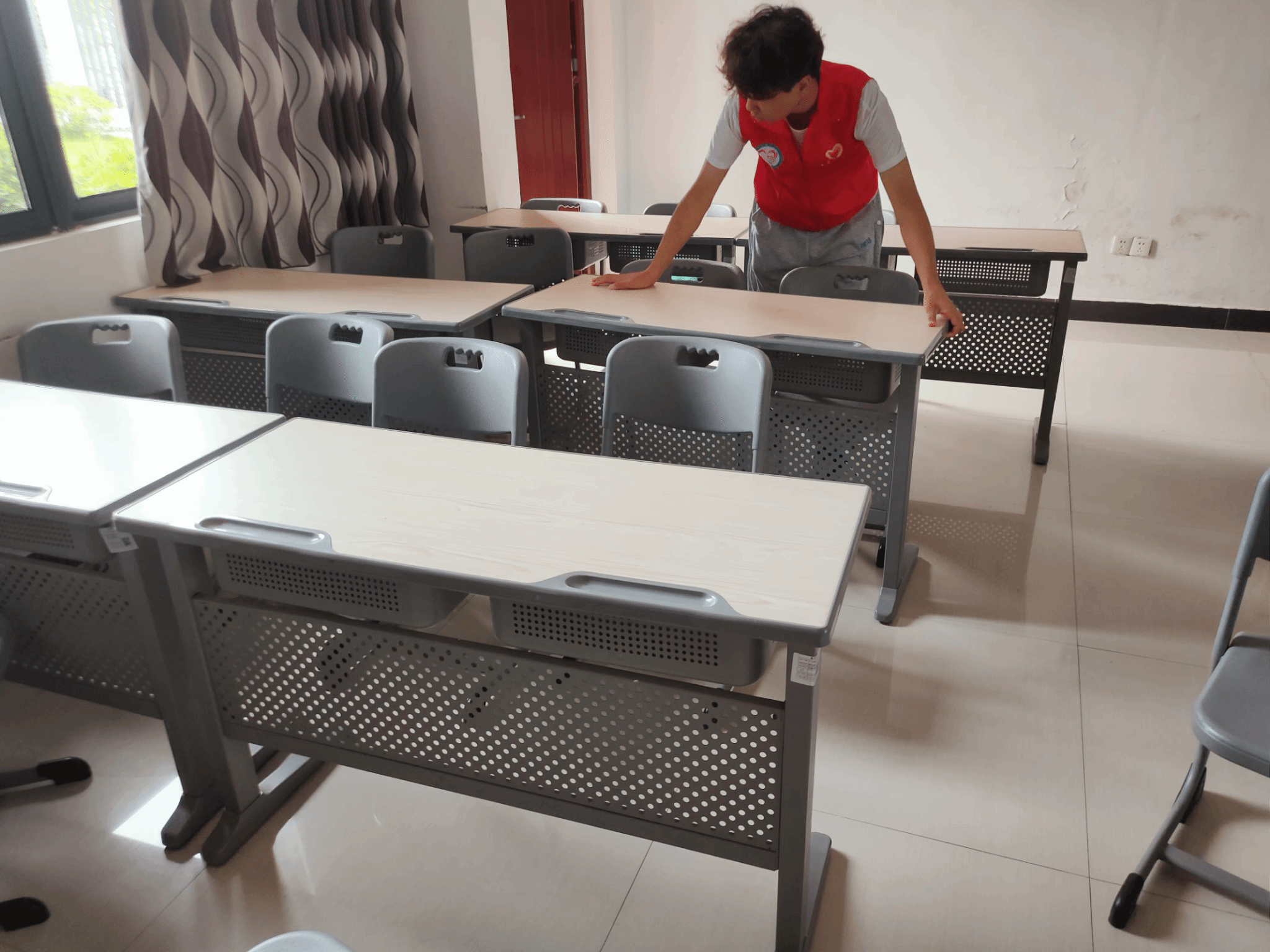 校园环境是育人的重要载体。本次活动中,志愿者们身着醒目的红色马甲,准时集结,分赴校园各处开展清洁工作。在教室内,志愿者们分工协作,默契配合,一组细致擦拭黑板,彻底清除粉笔痕迹,确保板面光洁如新;另一组认真清扫地面,不放过任何纸屑与灰尘;还有志愿者负责将课桌椅摆放整齐,横竖成线,营造出井然有序的学习空间。志愿者们专注投入,不嫌脏累,高效完成了各项清洁任务。整个活动过程充分展现了智工青协志愿者们高度的责任感和团结协作精神。大家目标一致,心手相连,用辛勤的汗水让校园环境在短时间内焕然一新。活动尾声,志愿者们进行了简短的交流分享。大家纷纷表示,能够亲手为同学们创造更整洁、舒适的学习环境,付出再多也倍感值得,这份体验也加深了同学们对校园的归属感与责任感。