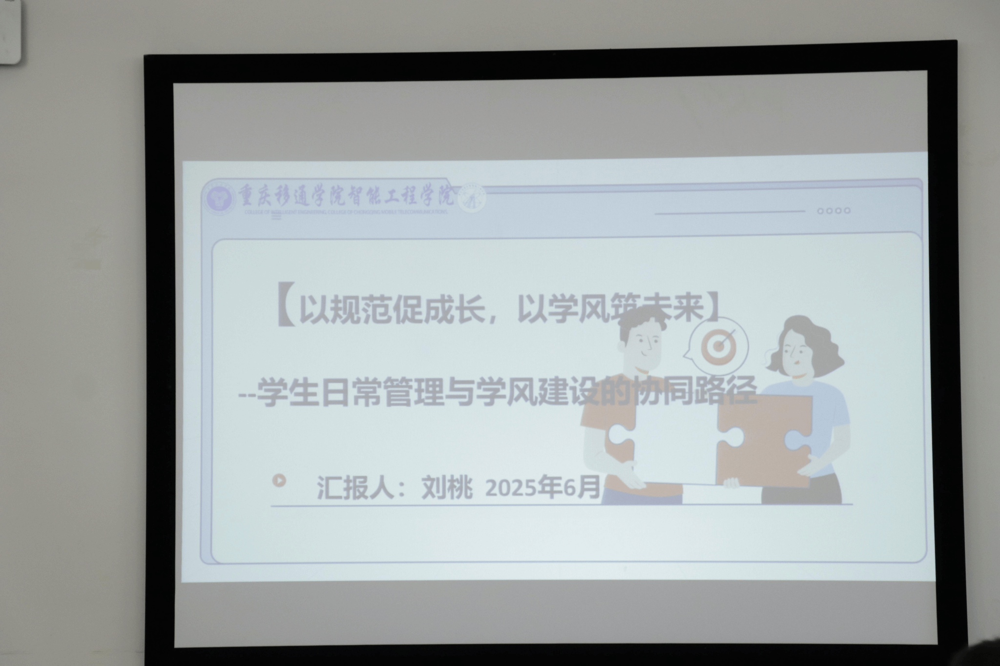 会上,刘桃老师深入剖析智能工程学院学子的特点,从学习态度到生活习惯,从兴趣爱好到心理需求,全方位展现了学生的真实面貌。为让导师们更直观地了解学生,他列举了诈骗、安全稳定、交通安全、心理健康等多方面的真实案例。这些案例就像一面面镜子,让导师们清晰地看到学生在成长过程中可能遭遇的困境与挑战,也为他们后期指导学生提供了清晰的思路和方向。