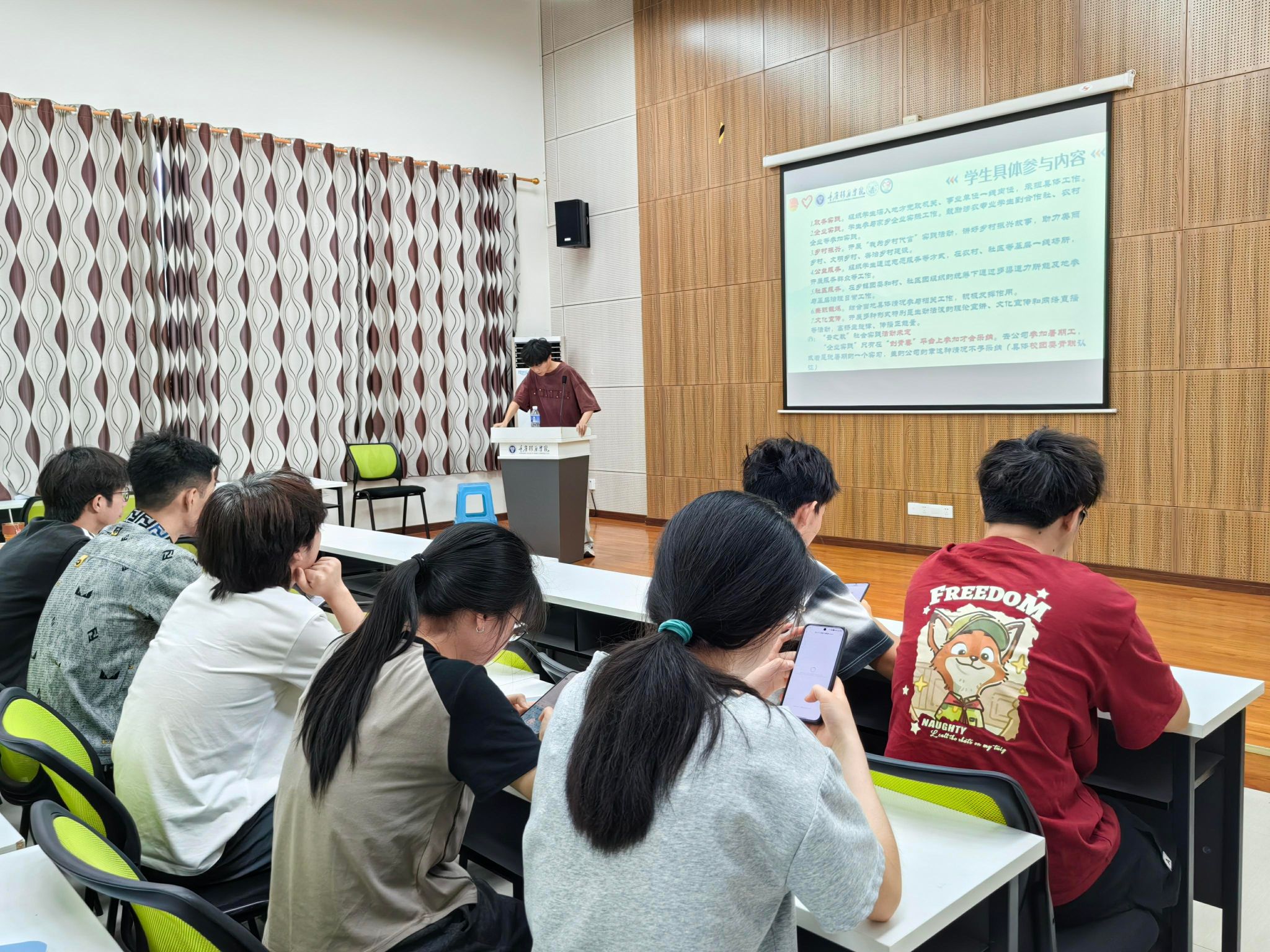 活动伊始,智工青协学生干部以“青年与家乡的双向奔赴”为切入点,围绕“返家乡”社会实践活动的背景、目标和重要意义进行阐述,强调该活动是落实国家“青年人才服务基层”战略的重要举措,旨在引导青年学子在服务家乡中深化国情认知、提升实践能力。随后,学生干部从实践内容(政务实践、企业实践、乡村振兴、公益服务、社区服务、兼职锻炼、文化宣传、网络“云实践”)、参与流程、评优细则等方面展开细致解读。“这不仅是一次社会实践,更是青年们感知国情民情、锤炼本领的一节实操课。”青协学生干部结合习近平总书记五四青年节对全国广大青年寄语精神,指出在参与“返家乡”是一次难能可贵的实践机会,同学们能在家乡这片熟悉的土地上,将所学知识与实践相结合,真正的做到“学以致用”。