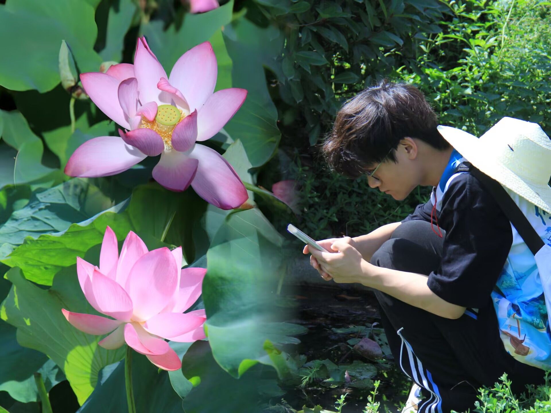 晨光熹微中,实践团首站抵达草街渔村。踏入这片被涪江滋养的田园秘境,湿润的水汽裹挟着稻穗清香扑面而来——百亩荷塘如绿色丝绒铺展,粉白荷花或擎着露珠静立,或在叶隙间闪躲晨光,蜻蜓点水时荡开的涟漪,恰是自然写下的诗行。成员们缓步穿梭,用镜头记录下荷花自然舒展的模样,把这份田园的宁静美好留存下来。