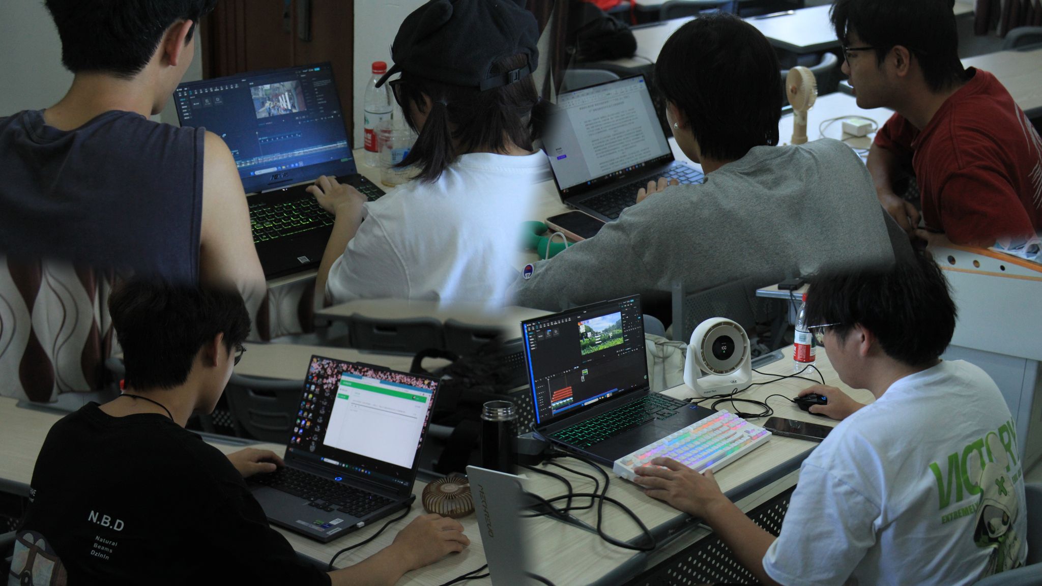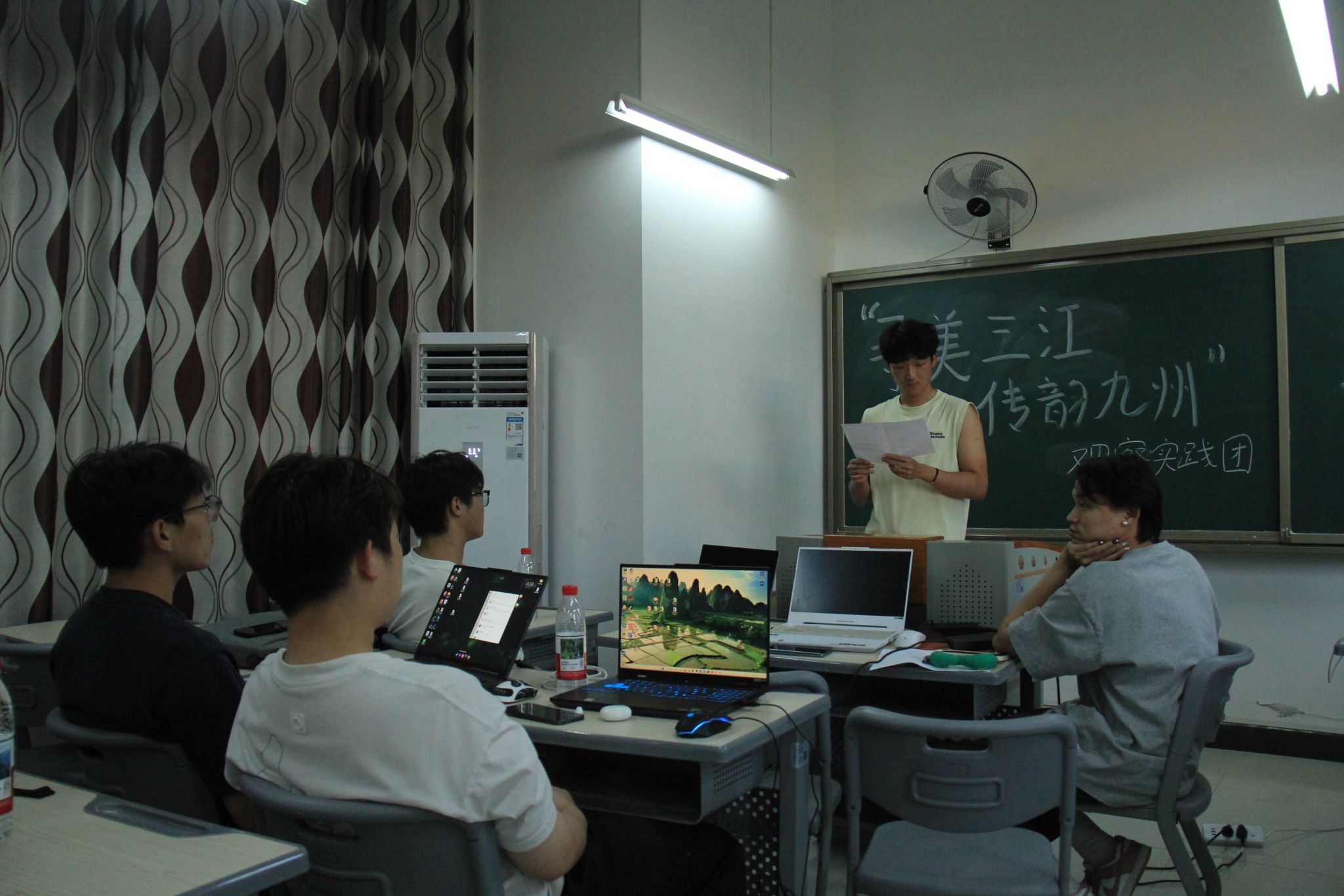 带着满载自然馈赠的素材,实践团成员们满载而归,回到松格101教室开启“定格美”的创作篇章。视频剪辑区里,电脑屏幕蓝光闪烁,成员们目不转睛地筛选、编排素材,用全景镜头铺展江面的开阔浩渺,以特写镜头捕捉叶脉上凝结的露珠,通过巧妙的剪辑节奏,让江水流动与石刻碑文在画面中无声对话。新闻稿撰写宣传区里,键盘敲击声与交谈的沙沙声交织,宛如奏响一曲创作的交响乐。成员们反复推敲字句,将江水的悠长、堤岸的沧桑化作跃然纸上的文字:“悠悠江水,静静诉说着这里的故事。”当暮色漫进窗户,初剪成片在电脑屏幕上流淌,那些被定格的晨光与江景,正在数字世界里焕发新生。