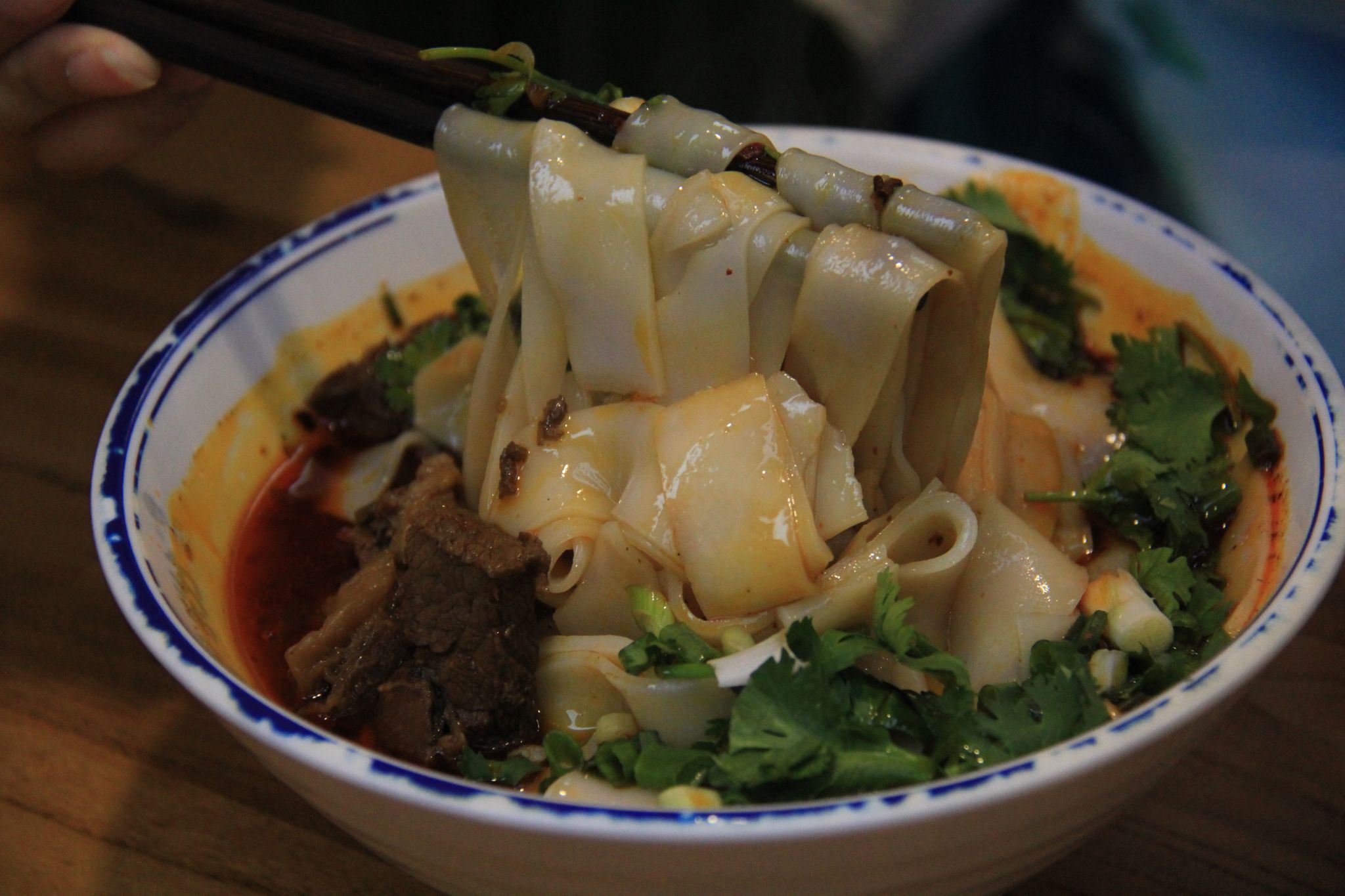 在陈宽粉,手工宽粉成为焦点。热腾腾的宽粉上,均匀铺着鲜嫩的肉片,青翠的香菜葱花与红汤相映成趣。精选后牛腿肉煮得软烂入味,咬下瞬间汤汁四溢;羊肉也软嫩无膻,完美吸收汤底滋味。手工宽粉质地光滑薄嫩,区别于普通粉条,口感极佳。搭配隔壁绿豆酥店的绿豆酥,外皮酥脆掉渣,内馅松散香甜,一软一脆,相得益彰,成员们争相用影像和文字留住这份绝妙组合。