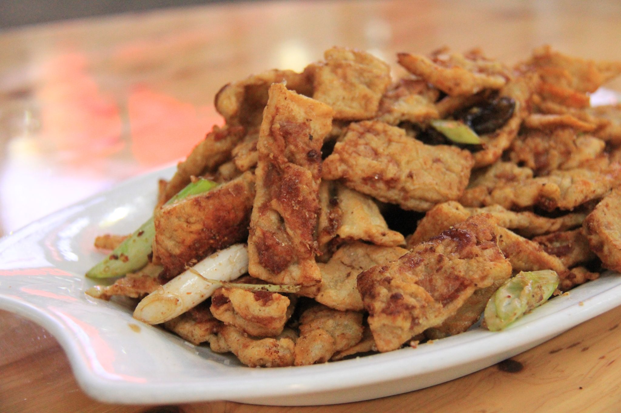 暮色初临时,向红烧鸡公店内已飘出浓郁香气。铁锅中,鸡块吸饱了秘制红油汤汁,表皮呈现诱人的焦糖色,入口紧实弹牙,麻辣味层层递进,又带着醇厚的豆瓣酱酱香;配菜中的鲜笋、芋头充分吸收汤汁,软糯入味。旅程的压轴美食——合川肉片,金黄酥脆的外皮裹着浓稠酱汁,甜咸交织中点缀着微微辣意,蒜香、葱香与肉香在咀嚼间不断释放,肉汁在齿间迸发,令人回味无穷。