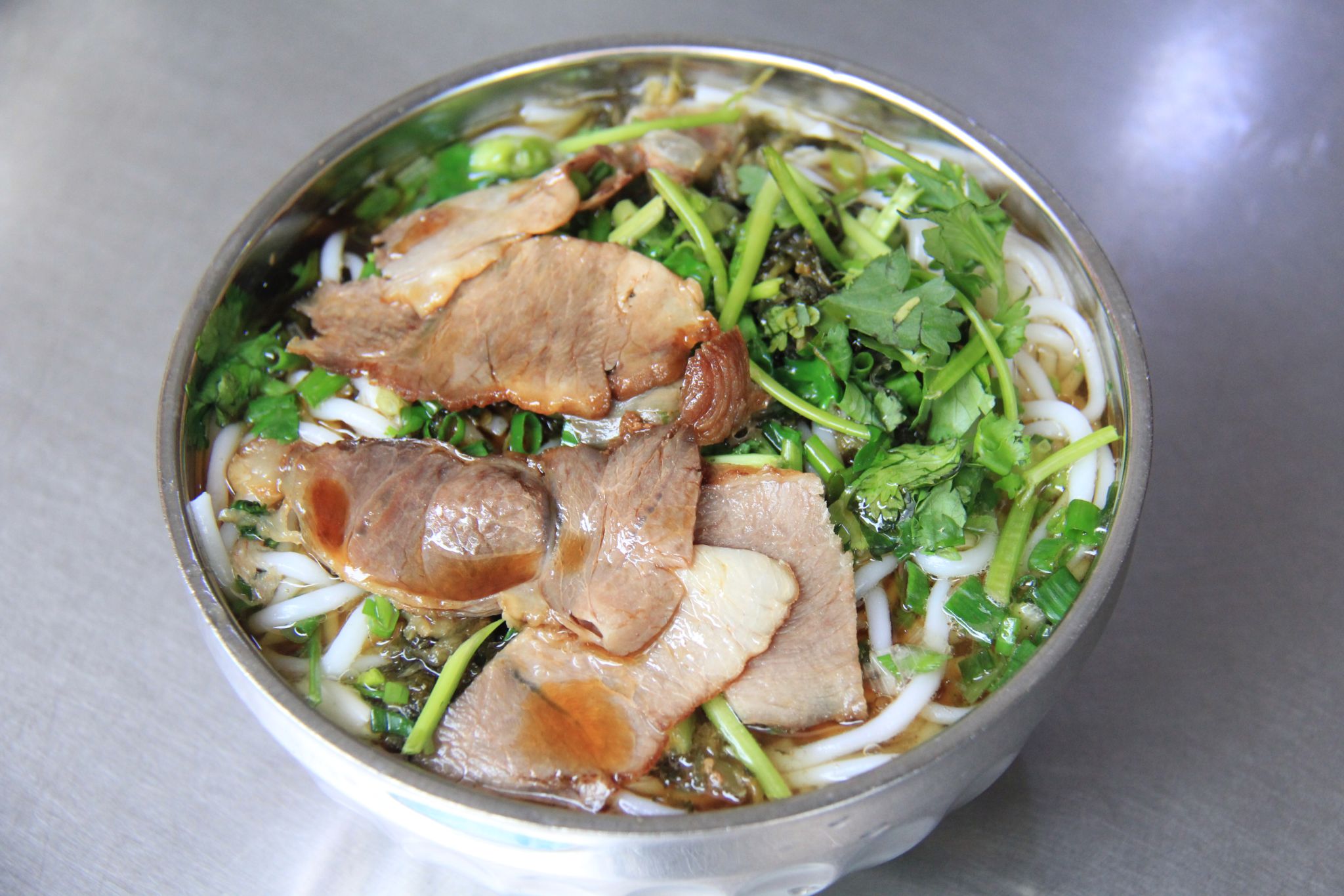 行至老街深处,哈笼包早餐店蒸笼腾起袅袅白雾。招牌鱼香肉丝包小巧精致,咬破薄皮的刹那,酸甜酱汁裹挟着脆嫩笋丝、肉丝在舌尖迸发,将传统川菜风味巧妙融入面点;酸菜芽菜包则以鲜辣开胃见长,饱满馅料咬下去汁水四溢。循着香气转入羊肉粉馆,乳白色羊汤浮着金黄油花,点缀翠绿葱花与鲜红辣椒,软糯粉条吸饱醇厚汤汁,鲜嫩羊肉入口即化,一碗下肚,暖意顺着肠胃蔓延,驱散了旅