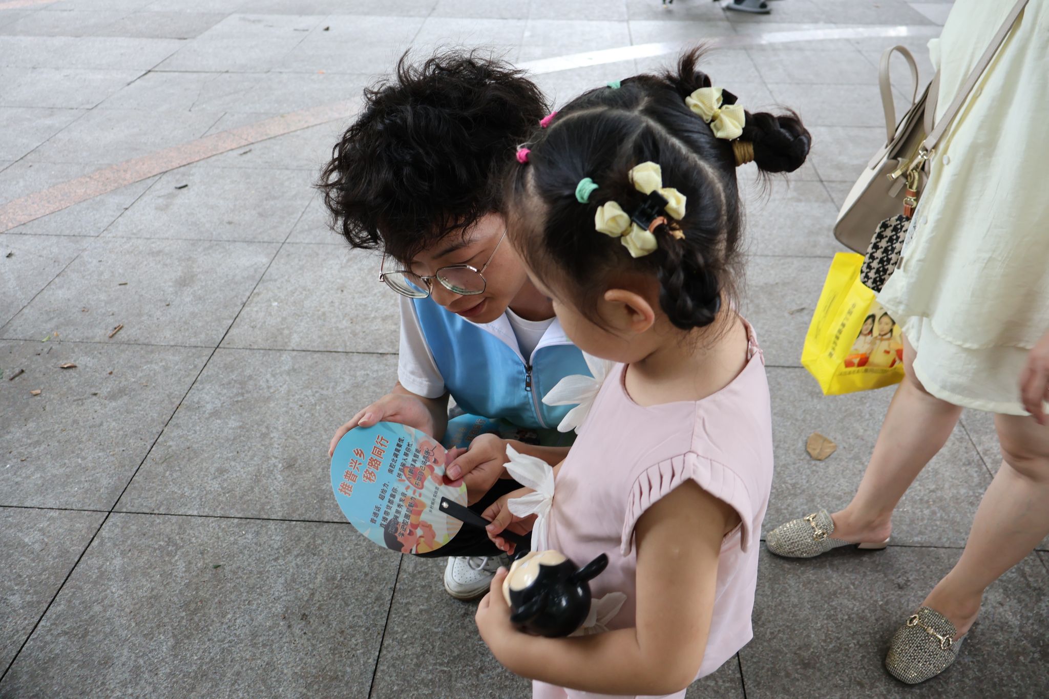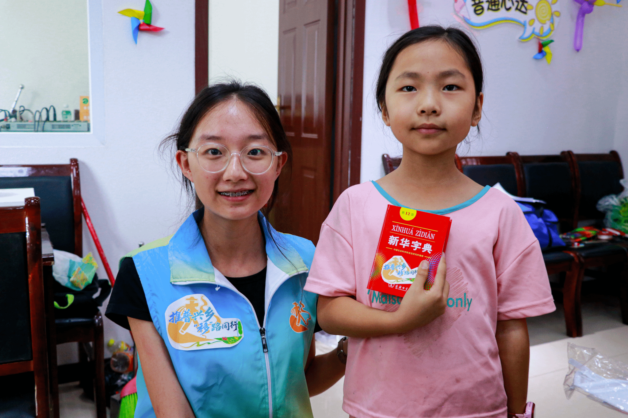 最初,我以为任务不过是用相机定格画面。跟着队伍给村里孩子上推普课,教拼音、唱儿歌时,我忙着抓拍志愿者们投入的模样——有人声音沙哑仍坚持,有人手舞足蹈逗乐孩子。孩子们从羞涩捂嘴,到大声跟读,那明亮眼神里的变化,被我悄悄收进镜头。七天里,相机记录的不只是画面,更是推普的温度。我不再是单纯举相机的人,发扇子时,教老人用普通话念扇面的文字,看他们不好意思又期待的神情,明白推普是搭桥——把知识、关怀,通过普通话,送到大家心里。