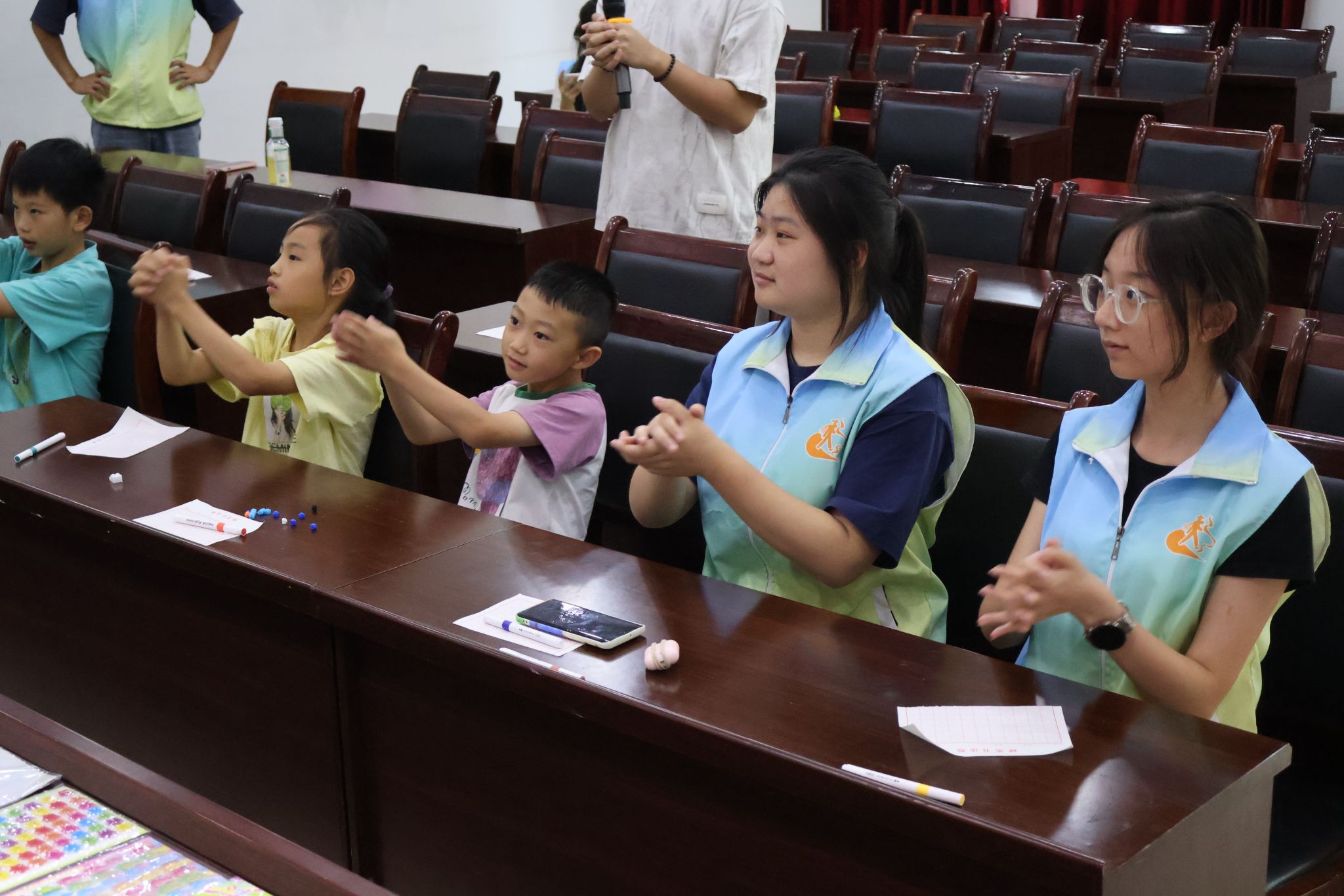 这次活动确实累,每天早上要提前到教室准备,晚上结束后还要整理东西。嗓子总是干的,腿也发酸,但和小朋友们相处的时光很开心。他们会追着喊老师,会把画的画和买的零食送给我。这种累里带着满足,让我觉得很值得。