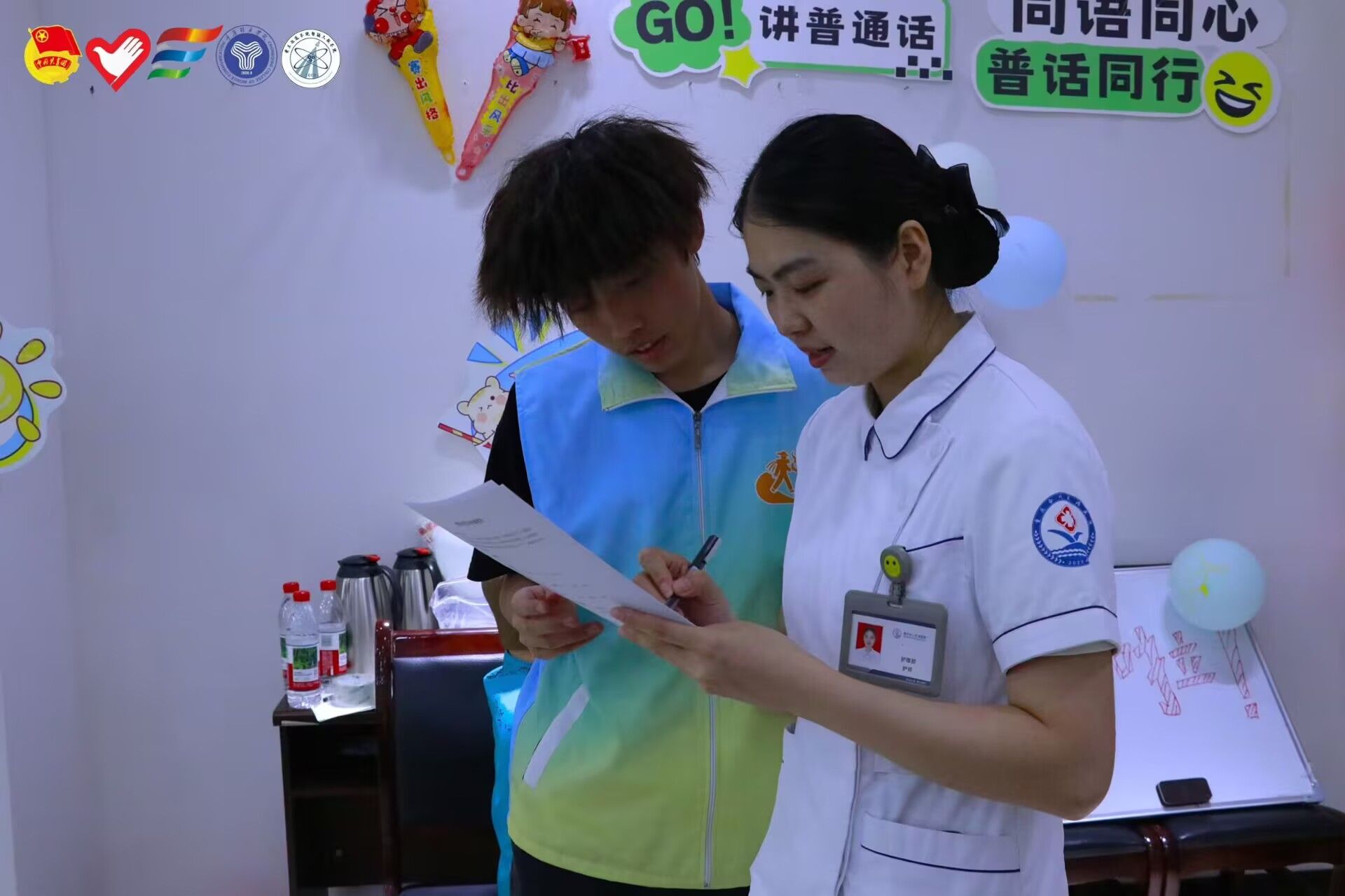 七天的推普之路,像一场浸润乡土的细雨,悄悄在佛耳村的田埂上、钓鱼城社区的屋檐下,播撒下语言的种子。出发时心里总悬着块石头,怕自己这两下子担不起推普的事儿。可一脚踏进村子,跟乡亲们聊开了,才发现大家心里都跟明镜似的。那些问卷上的字迹、老人接过宣传册时的眼神,都在诉说着对“沟通桥梁”的期盼。看着孩子们从怯生生地抿嘴,到争着用普通话介绍自己的画作,忽然明白“从娃娃抓起”的深意,这些童声里,藏着乡村未来的模样。蔬菜园间的直播镜头、康养院里的书法墨香、急救课堂上的双语解说,让推普有了更温暖的形态。