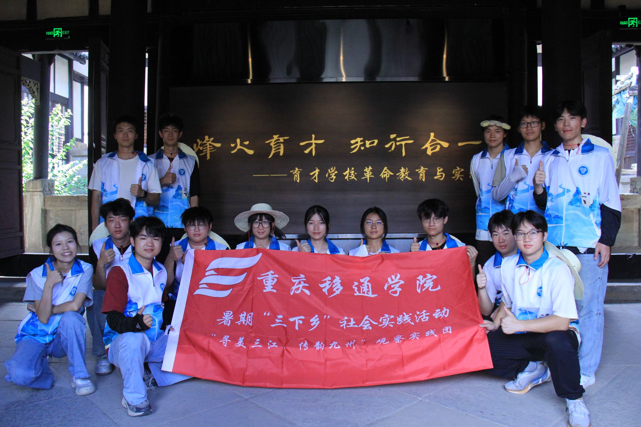 7月3日,实践团成员踏上生态与人文的深度探索之旅,走进草街渔村,百亩荷塘铺展如碧,粉白荷花点缀其间,尽显田园诗意;移步育才学校旧址,参天黄葛树见证岁月,陶行知先生“生活即教育”的理念浸润人心,泛黄手稿与老照片诉说着“为一大事来”的教育初心;漫步渔村街道与盐井老街,青石板路泛着温润光泽,传统建筑的飞檐翘角勾勒天际,居民口中的往事串联起渔家岁月——这些交织着自然与人文的印记,让成员们在时光流转中深掘水乡文脉。