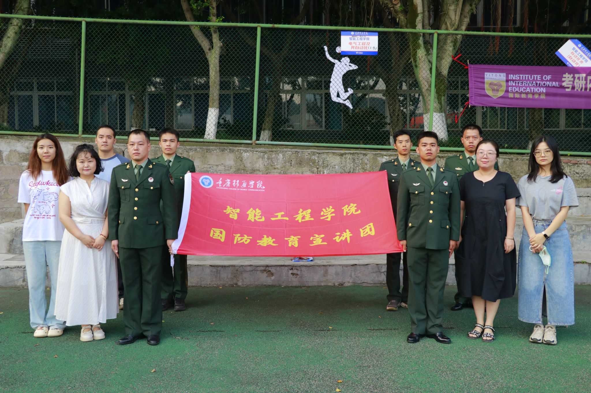 随后,智能工程学院国防教育宣讲团旗手出旗,宣讲团自2023年12月成立以来,始终致力于国防知识的传播与爱国主义精神的弘扬。过去两年间,宣讲团开展了多场宣讲活动,覆盖全院学生,有效提升了同学们的国防意识与参军热情。2025年秋季,宣讲团将继续发挥桥梁纽带作用,推动国防教育走深走实。