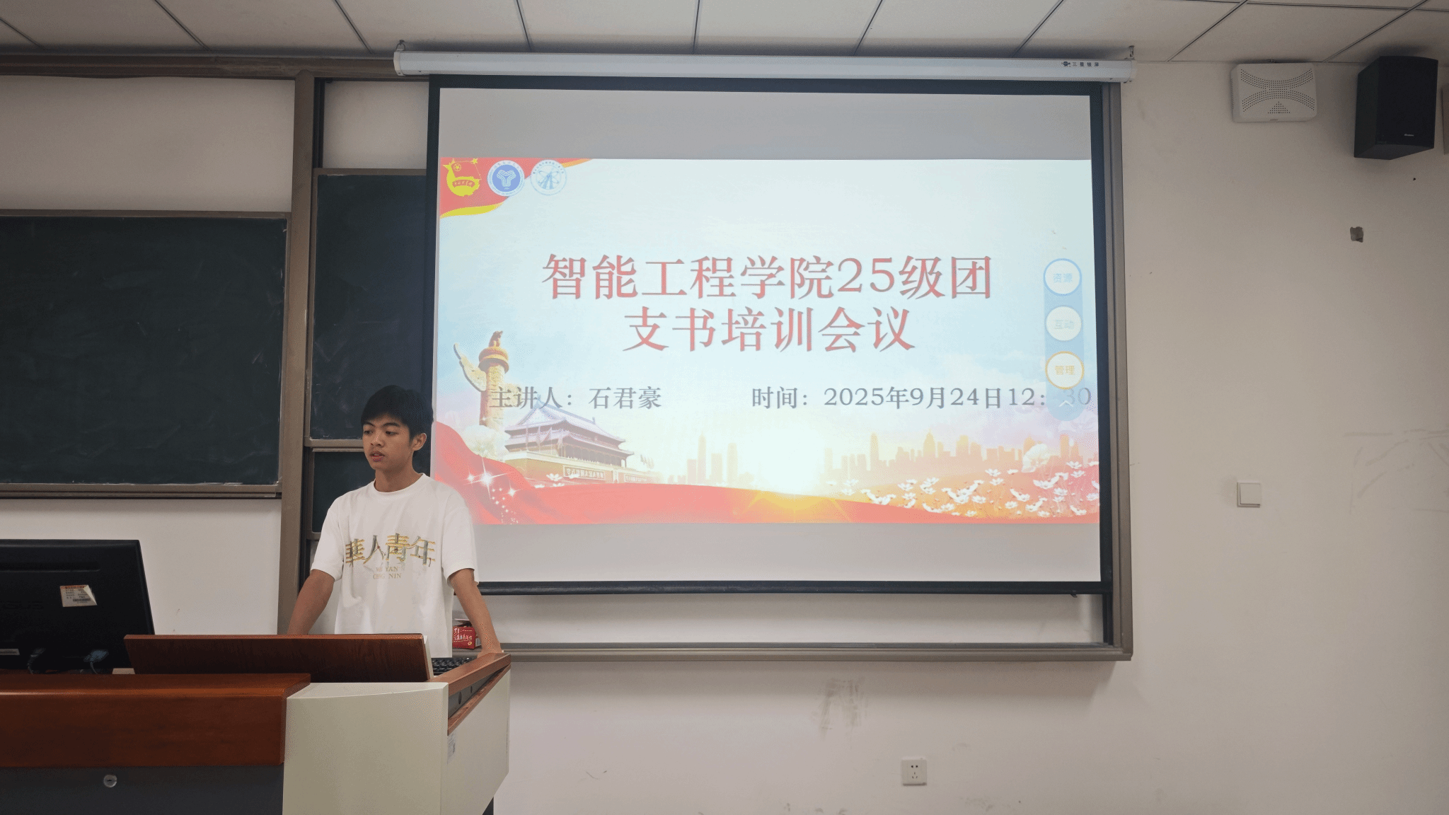 赋能新团支书,启航团务新程。为帮助2025级新生团支书迅速且高效地熟悉团务工作,提升业务能力,强化责任意识。9月26日12:30,智能工程学院2025级新生团干部培训会如期举行。本次培训会由智能工程学院学生副书记冯英杰主持,组织部部长石君豪担任主讲人,2025级全体新生团支书参与了此次培训。智能工程学院团总支书记姜璐老师、专职团干部徐非老师莅临本次培训。