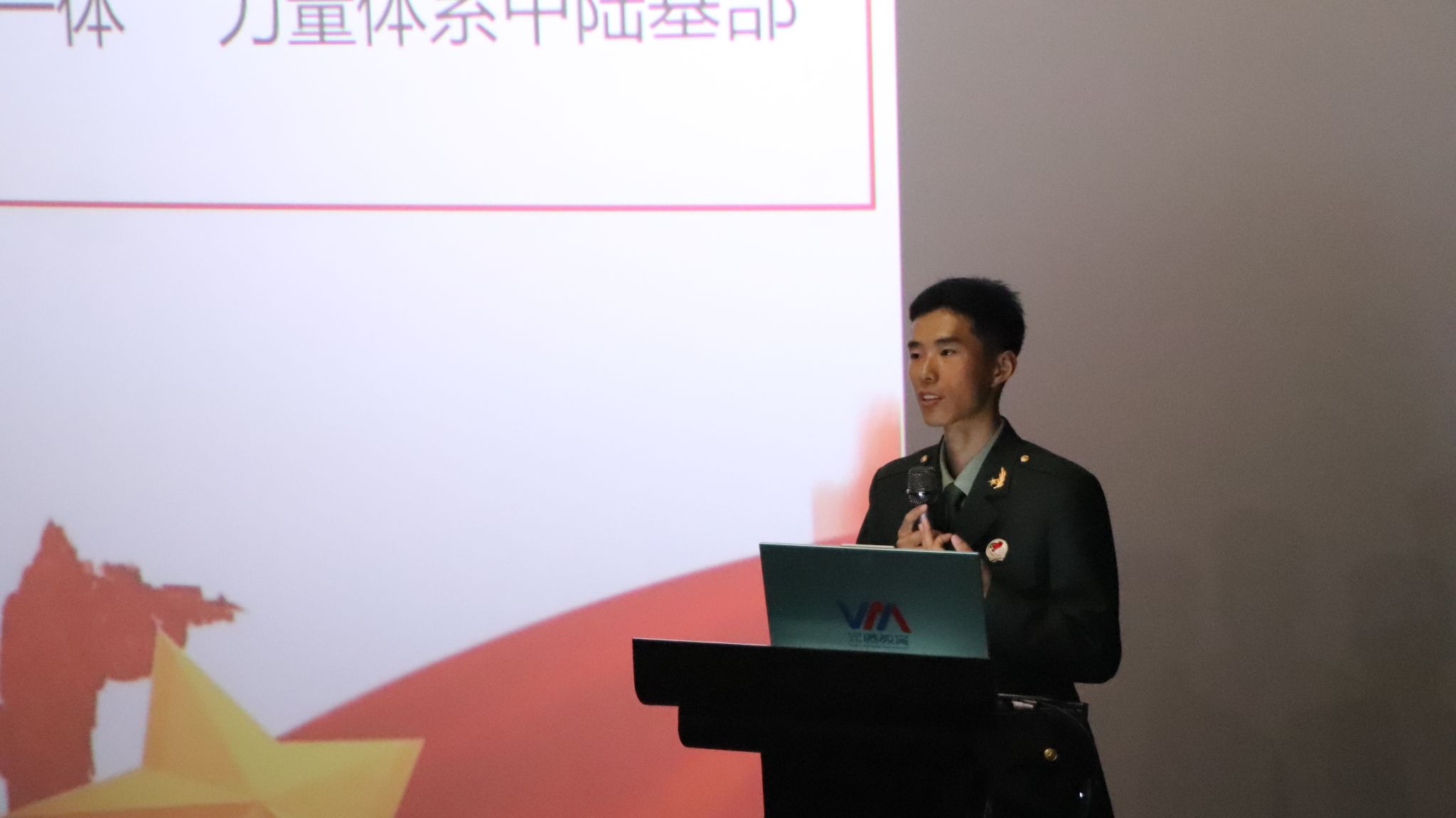 活动伊始,宣讲团成员倪钦源同学以“新时代国防建设成就”为切入点,通过图文并茂的PPT和视频资料,向同学们展示了我国战略威慑力量的核心装备——东风-5C洲际弹道导弹。他介绍了该导弹的研发历程、技术突破及战略意义,强调其作为维护国家安全的重要基石,彰显了中国科技强军的坚定步伐。“东风-5C不仅是‘大国重器’,更是民族自信的象征。”同学们纷纷为祖国的国防实力点赞。