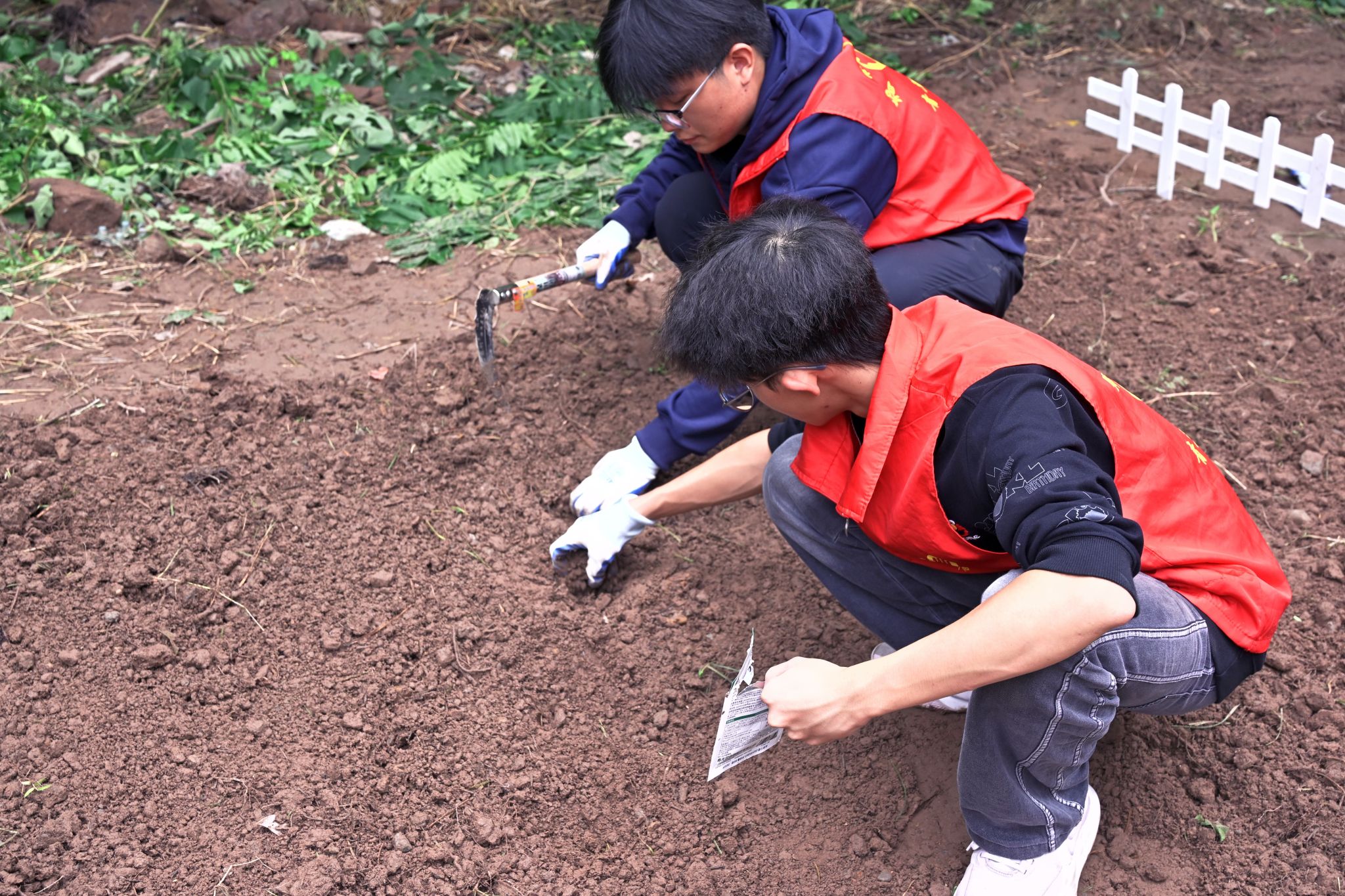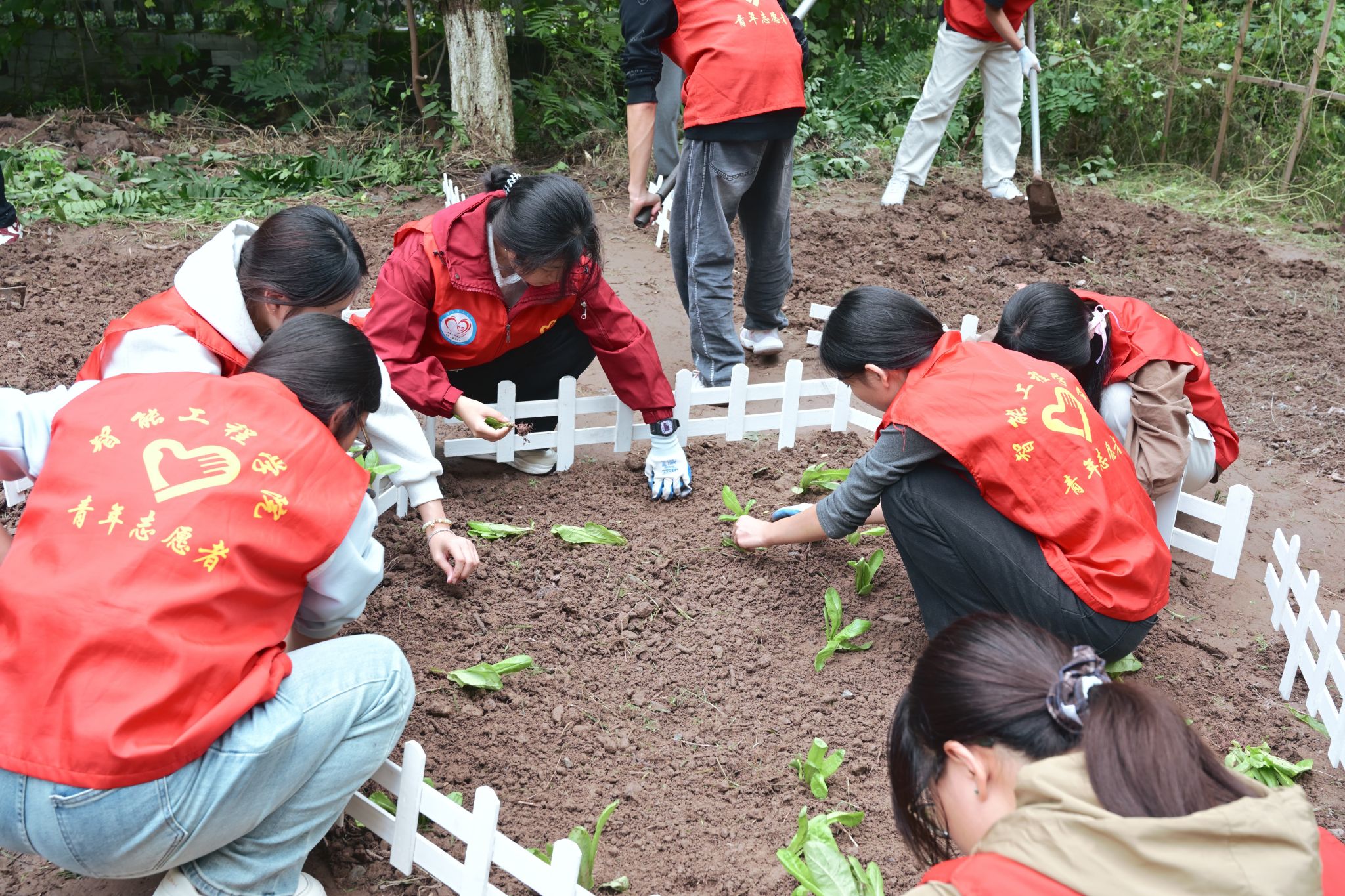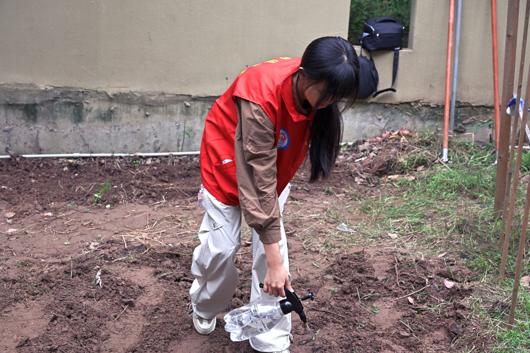 此外,同学们挽起袖子,弯下腰,亲身参与了播种及插苗等活动。期间,同学们认真学习了如何正确使用锄头松土,如何保持秧苗的间距与深度,同学们从一开始的生疏笨拙,逐渐变得熟练有序。汗水浸湿了衣襟,泥土沾满了双手,但大家的热情却愈发高涨,体会着“汗滴禾下土”的真正含义,也感受着集体劳动带来的效率与快乐。