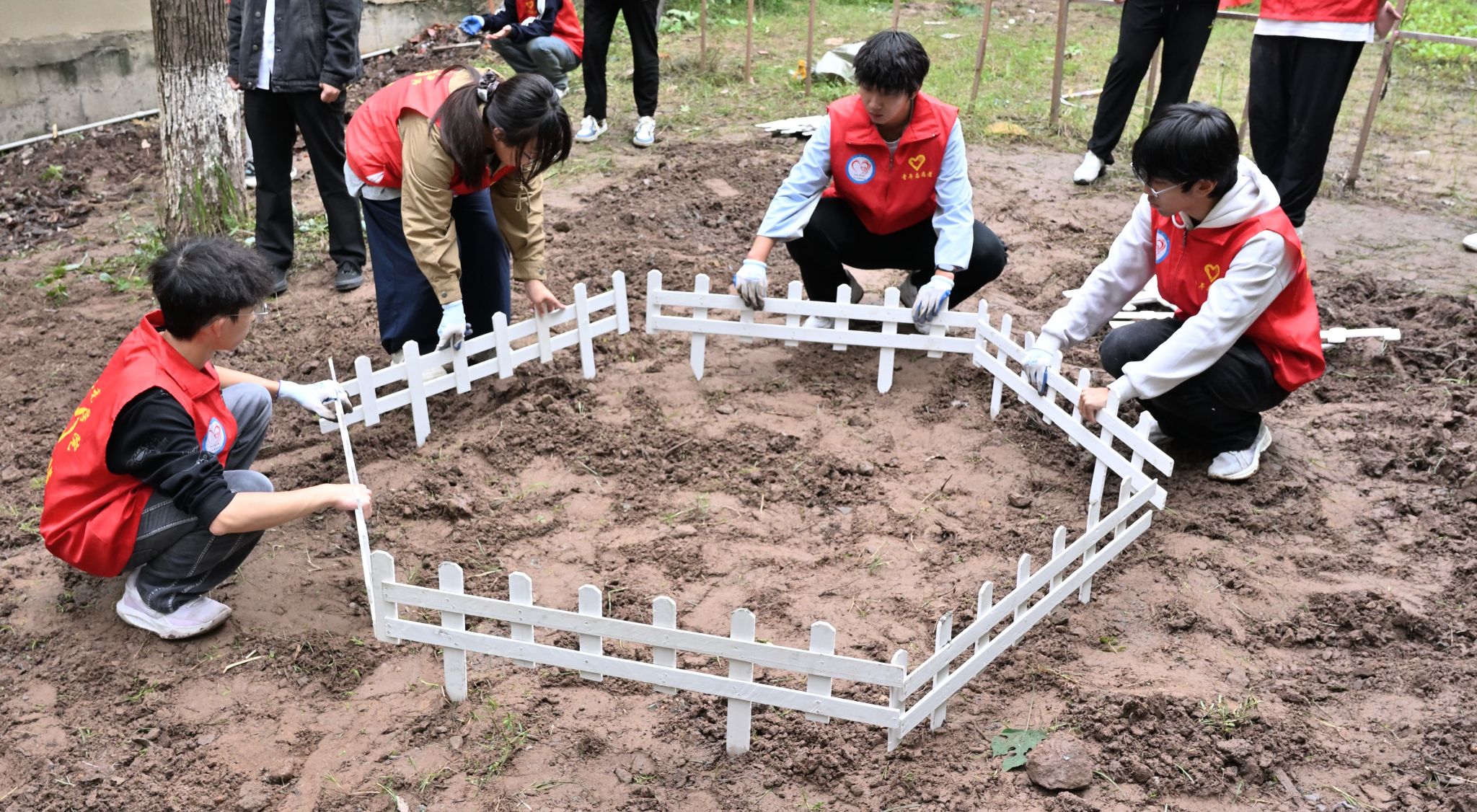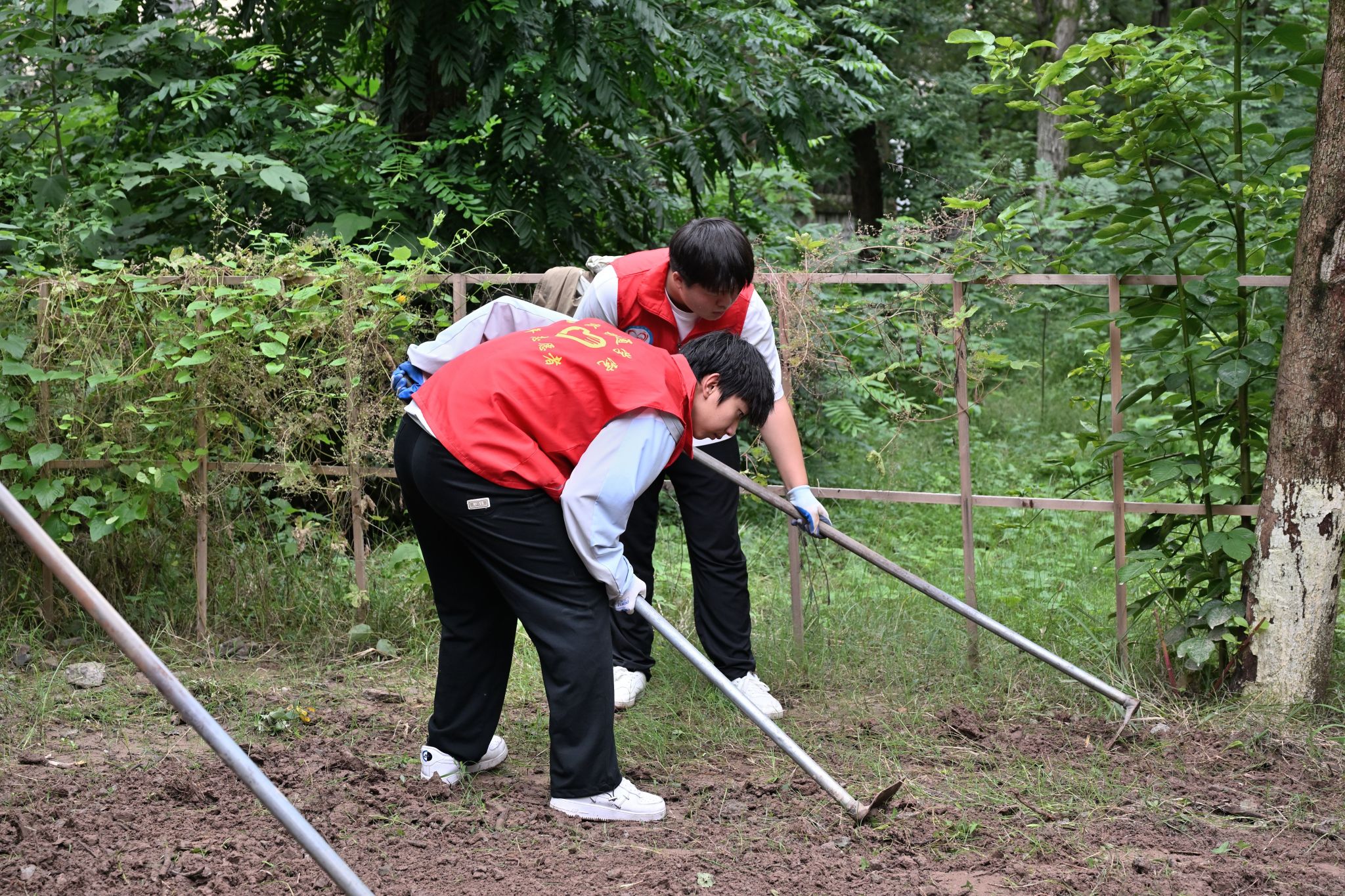 活动当天,阳光和煦,志愿者们精神饱满地抵达实践基地。在负责人简短而隆重的介绍后,大家迅速投入到各项劳动教育任务中。同学们手持锄头清除杂草、石块与树枝,虽然动作略显笨拙,但是同学们脸上也洋溢着笑容。“锄草要找准根部角度”“一起撬动大石头”……实践基地回荡着大家相互协作的提醒声。