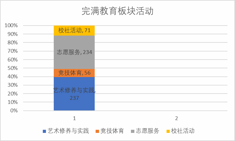 智工的社团活动参与人数最少,由此可见,智工的小伙伴们对于社团活动的重视程度不够。在完满教育活动中,社团活动是必修的四大板块之一,智工的小伙伴们不仅要注重学习,还要多多体验一下各具特色的社团中体会不一样的世界,开拓自己的眼界,提升自我修养,做到德、智、体、美、劳全面发展。