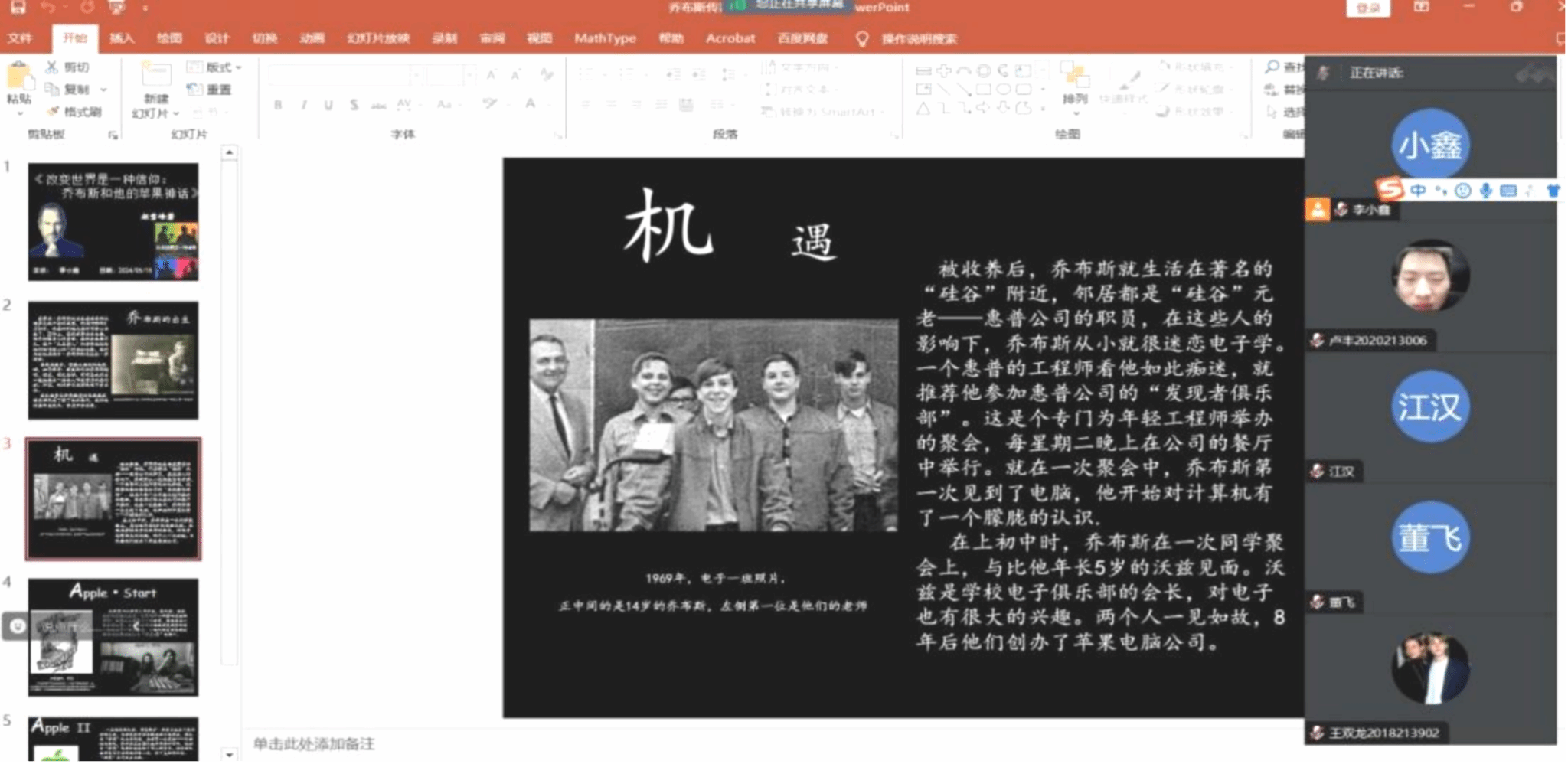 本次大咖阅读围绕班级所选的《改变世界是一种信仰-乔布斯和他的苹果神话》一本大咖传记展开,在从本次阅读大咖活动中,首先让学生们明白了要想干好事不能应付,其次是不能试图让环境适应你,只能让你适应环境。分享过程中,很多同学都发表了自己的看法与理解,同学们从本次活动中领悟出:命运就是一场战斗,激励着我们在创新的道路上永不止步。追寻他走过的路,在坎坷的人生旅途中,为追求卓尔不群,用自己的全部心血追求理想,全身心投入自己的事业中去,不惜一切代价,不惧任何失败。