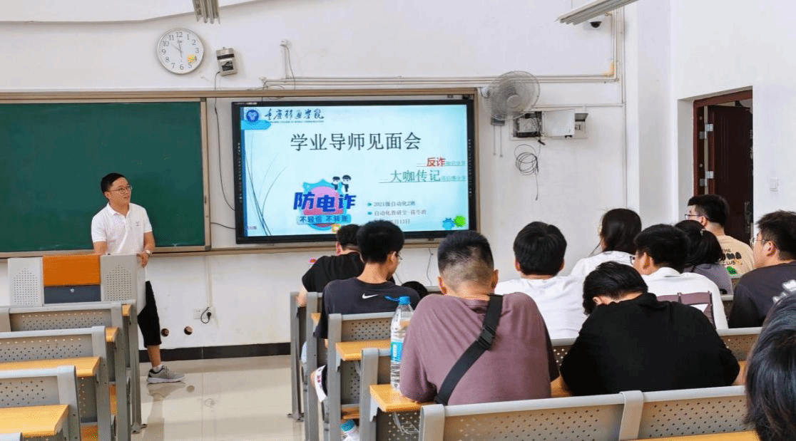 5月15日,智能控制教研室蒋冬政老师带领2021级自动化2班同学集中在学校竹逸A303教室,在蒋冬政老师的带领下首先进行大学生反诈骗知识宣传教育,然后组织同学们对阅读各自选择的信息产业大咖传记的心得体会进行现场分享。同学们针对信息产业大咖的创业过程十分感兴趣,畅所欲言,气氛异常活跃。
