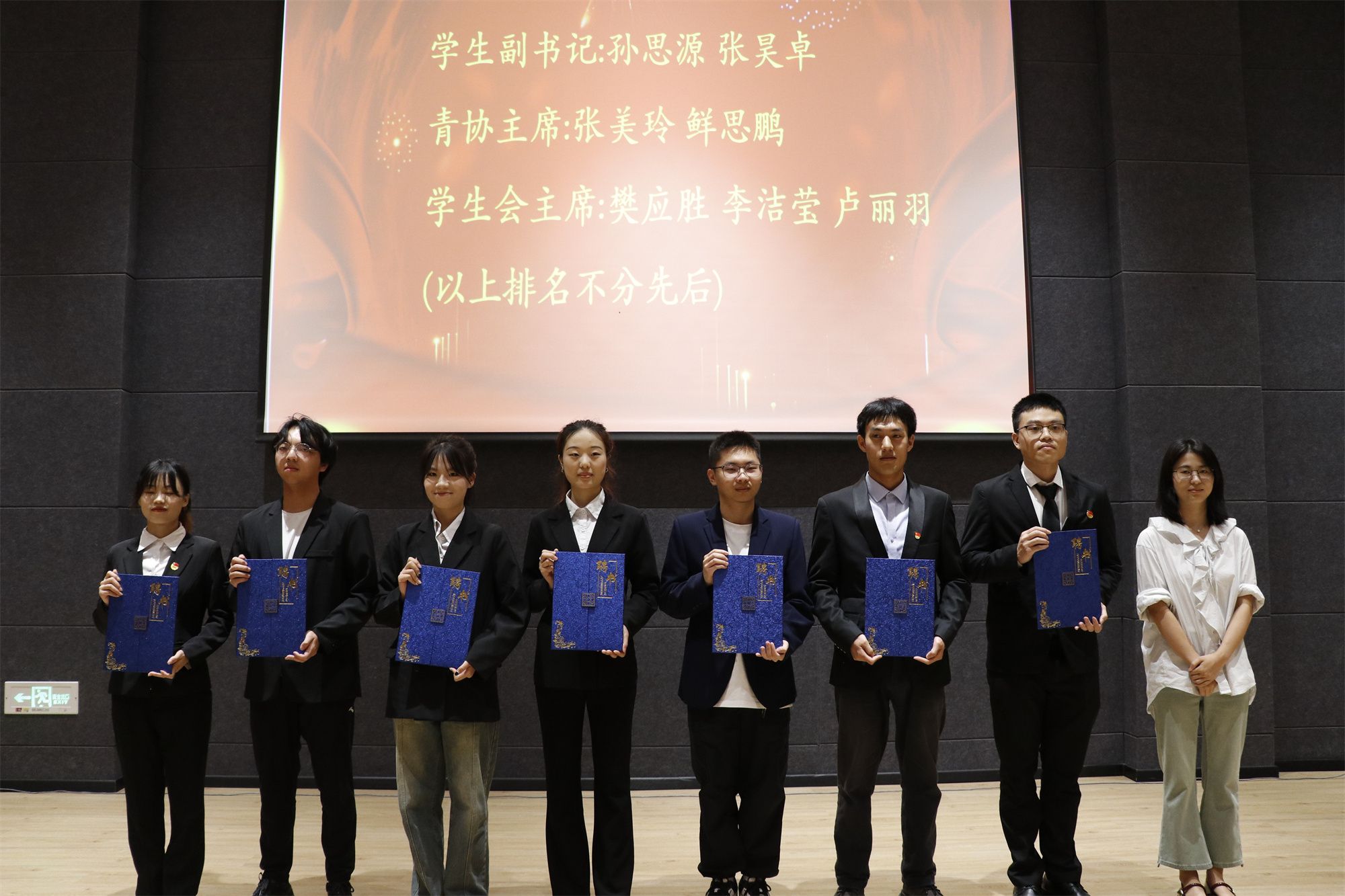 主席团代表发言结束后,由吴家家老师为四届一任主席团颁发聘书。其中,包括团总支副书记孙思源、张昊卓,青协志愿者协会主席张美玲、鲜思鹏,学生会主席李洁莹、樊应胜、卢丽羽。随后进行了四届一任学生干部的聘书颁发,分别由各个学生部门的干部代表上台领取聘书。这不仅仅是对大家辛勤工作的肯定,也是对他们在过去一年中所取得成绩的赞扬。最后,由团总支书记张颖超上台宣读四届二任的任命文件。至此,智能工程学院第四届第二任学生组织正式成立。