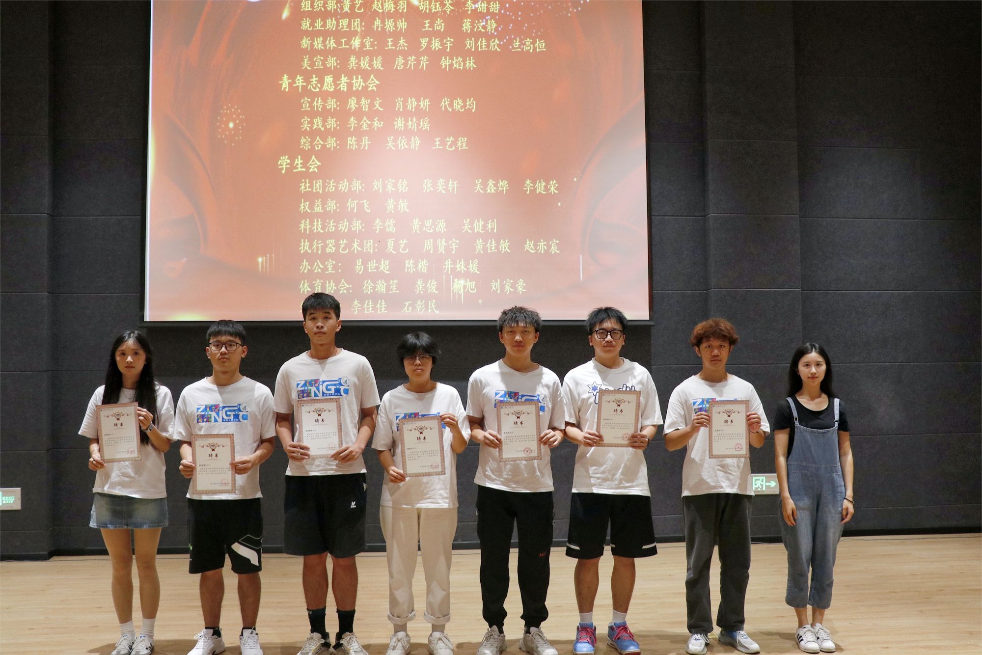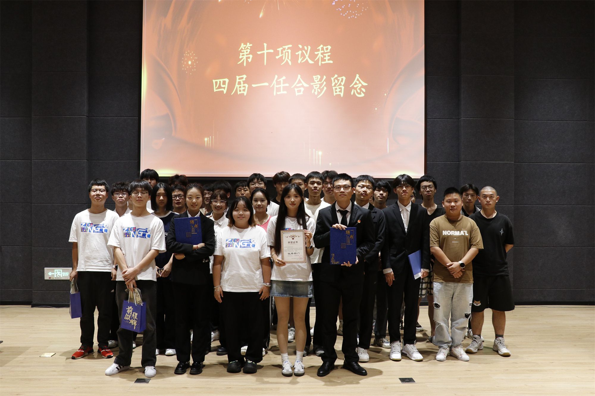 大会第三项,由四届一任各部门代表上台进行述职。在过去的一年中,各个部门团结协作、共同面对挑战,在部门代表的汇报当中,大家不仅看到了各个部门在每一个工作背后默默付出的汗水,也感受到了学生组织工作所取得的累累硕果。最后,会议进行了四届一任智能工程学院学生组织优秀部门表彰,分别是:团总支新媒体工作室、团总支组织部、青年志愿协会、学生会执行器艺术团以及学生会体育协会。各部门代表上台领奖时,看着手中闪闪发光的奖状,过去一年的所有努力都得到了肯定。在鲜花与掌声中,智能工程学院四届一任学生组织述职大会圆满结束。
