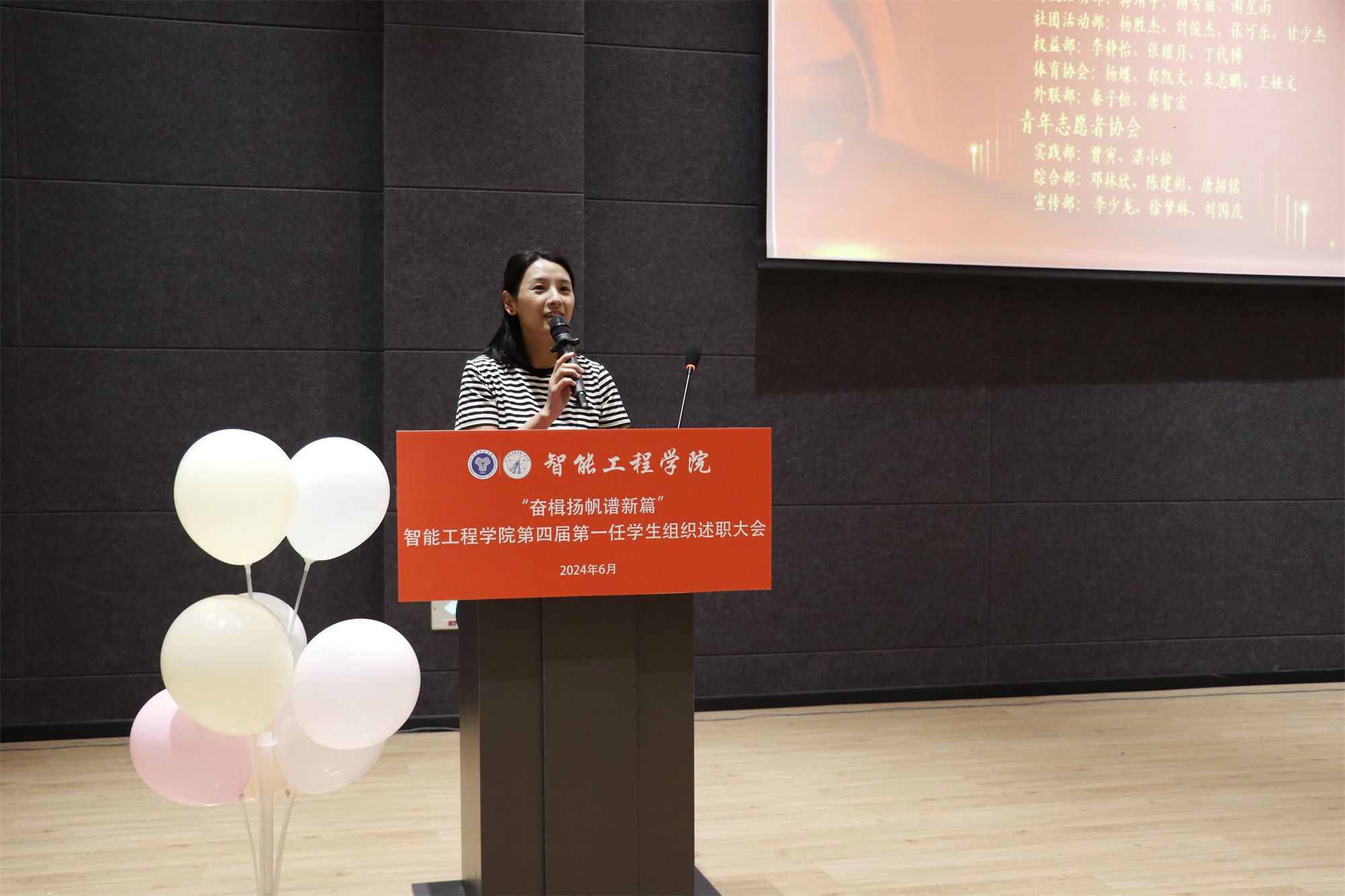 时间匆匆忙忙地走过,一眨眼便又是一年。不知不觉,智能工程学院学生组织又陪伴大家走过了一年的春夏秋冬。在这个夏花盛开的季节里,我们也迎来了智能工程学院第四届第一任学生组织述职大会。会议于6月19日14:30在六度空间105学术报告厅举行,此次述职大会旨在进一步提升同学们对学生组织的认同感、归属感和成就感。同时,由此也将告别四届一任,让四届二任扬帆起航、谱写新篇章。出席本次述职大会的有智能工程学院团总支书记张颖超、各板块指导老师、以及两任的各学生组织成员。