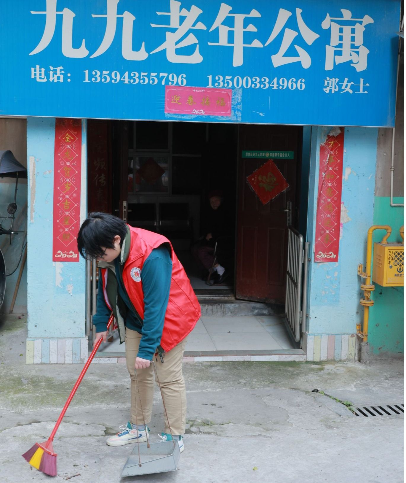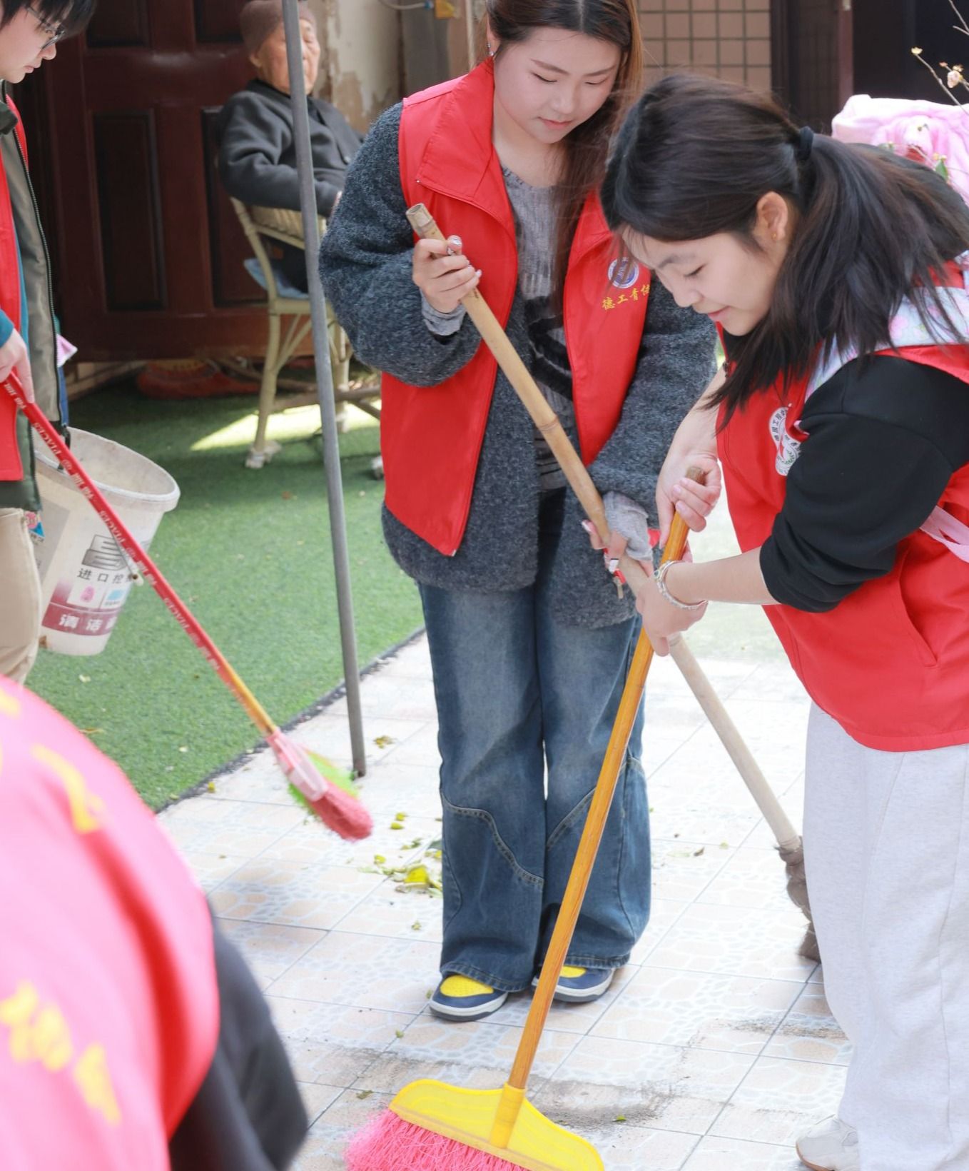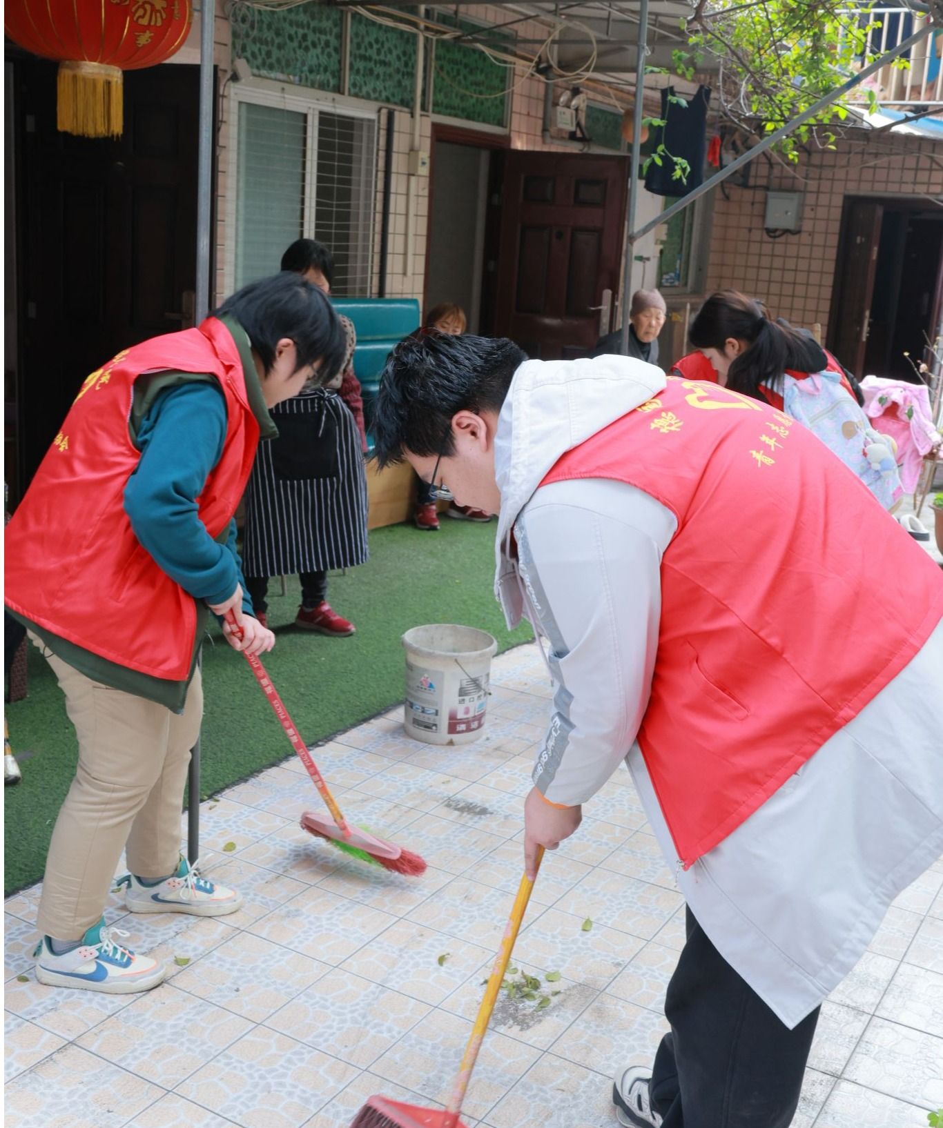 到达养老院后,志愿者们迅速行动起来。大家分工明确,有的拿起扫帚清扫庭院,有的用抹布仔细擦拭栏杆,还有的认真清理房间的每一个角落。在大家齐心协力的努力下,养老院的环境焕然一新,窗明几净,地面整洁。