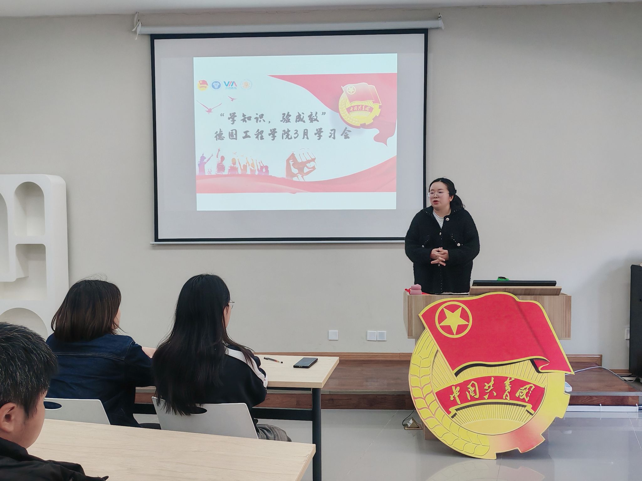 学习会伊始,团总支书记肖瑶老师发表了开场讲话。她着重强调,青年工程对青年学生的成长成才有着不可替代的重要意义。肖老师指出:“马克思主义理论体系科学地揭示了人类社会发展的规律,通过系统学习,同学们不仅能更好地把握时代发展的脉络,还能在复杂的社会环境中,树立起正确的世界观、人生观与价值观。”