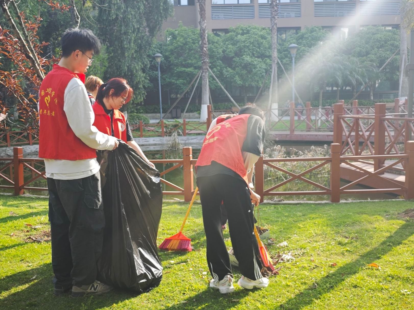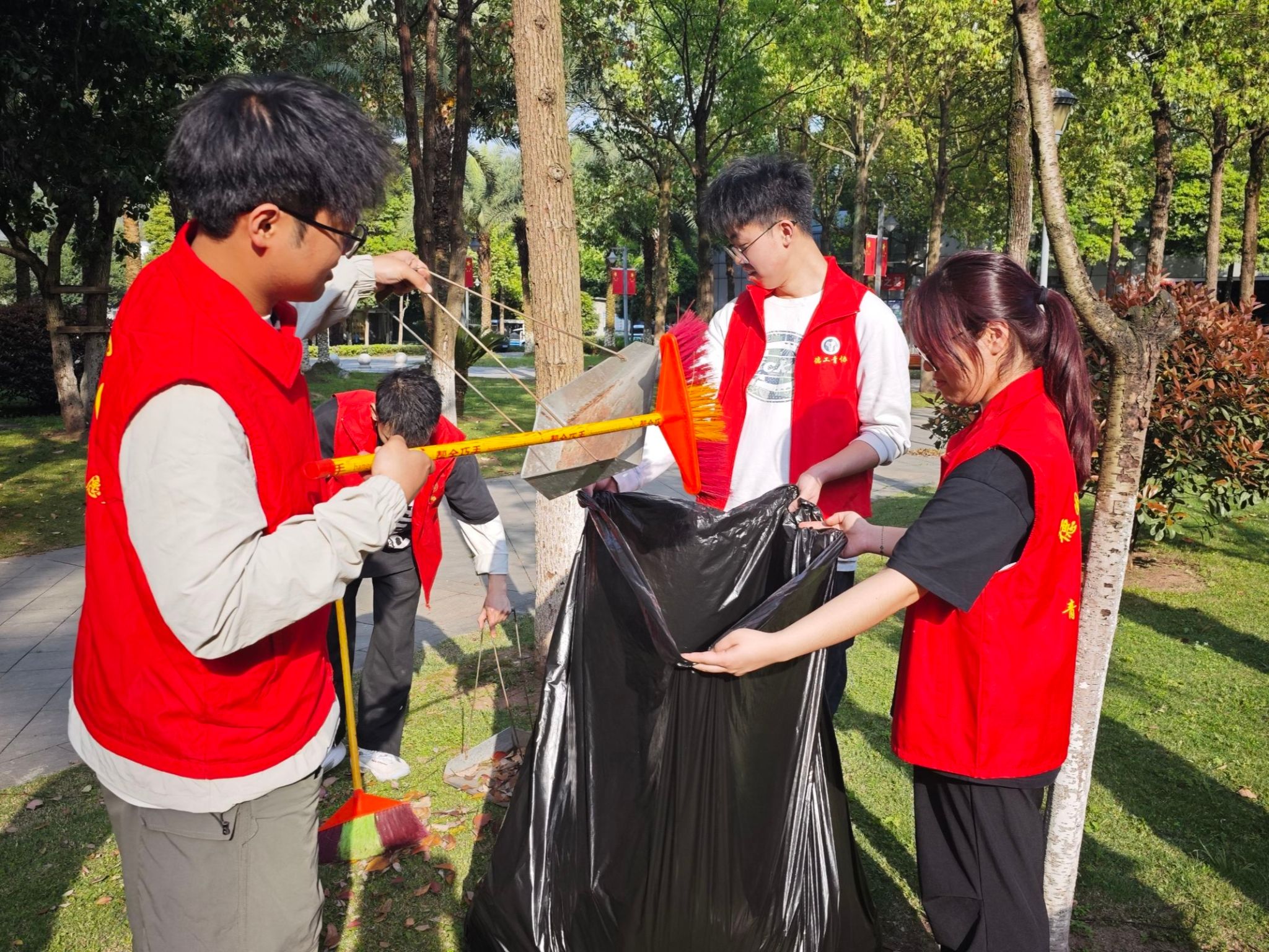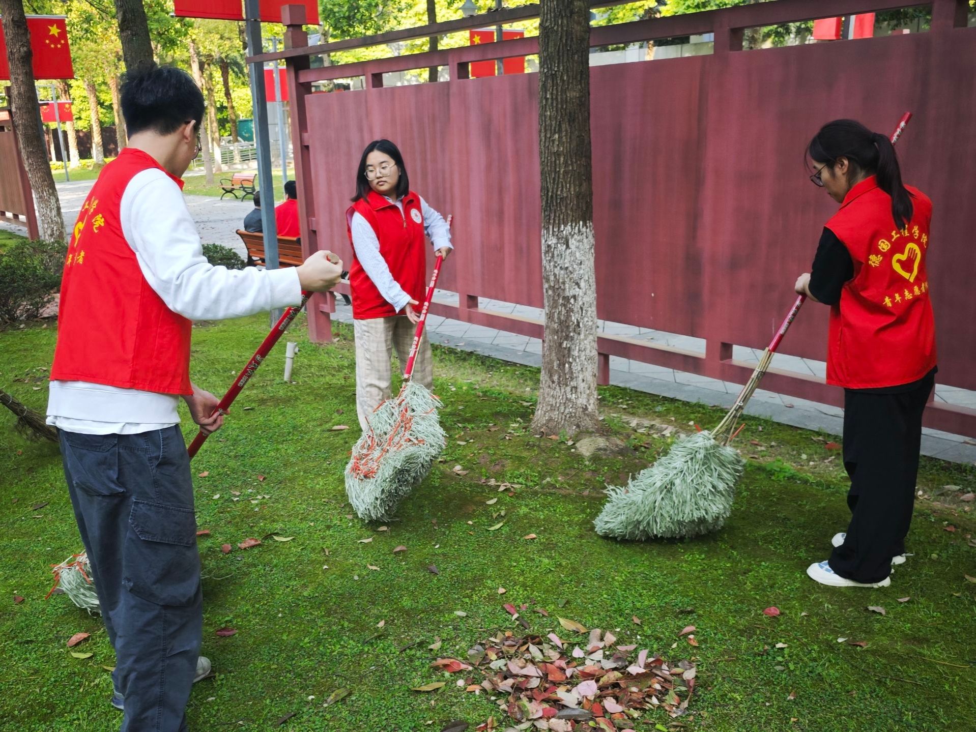 电气七班的付添悦同学在清洁活动结束后感慨道:“我握紧手中的扫帚,看到草地上的落叶,石阶缝隙里的沙砾,同组的伙伴们忙碌的身影,那一瞬间,我恍惚觉得我们清扫的不是落叶,而是轻轻掀开历史的扉页。 ”
