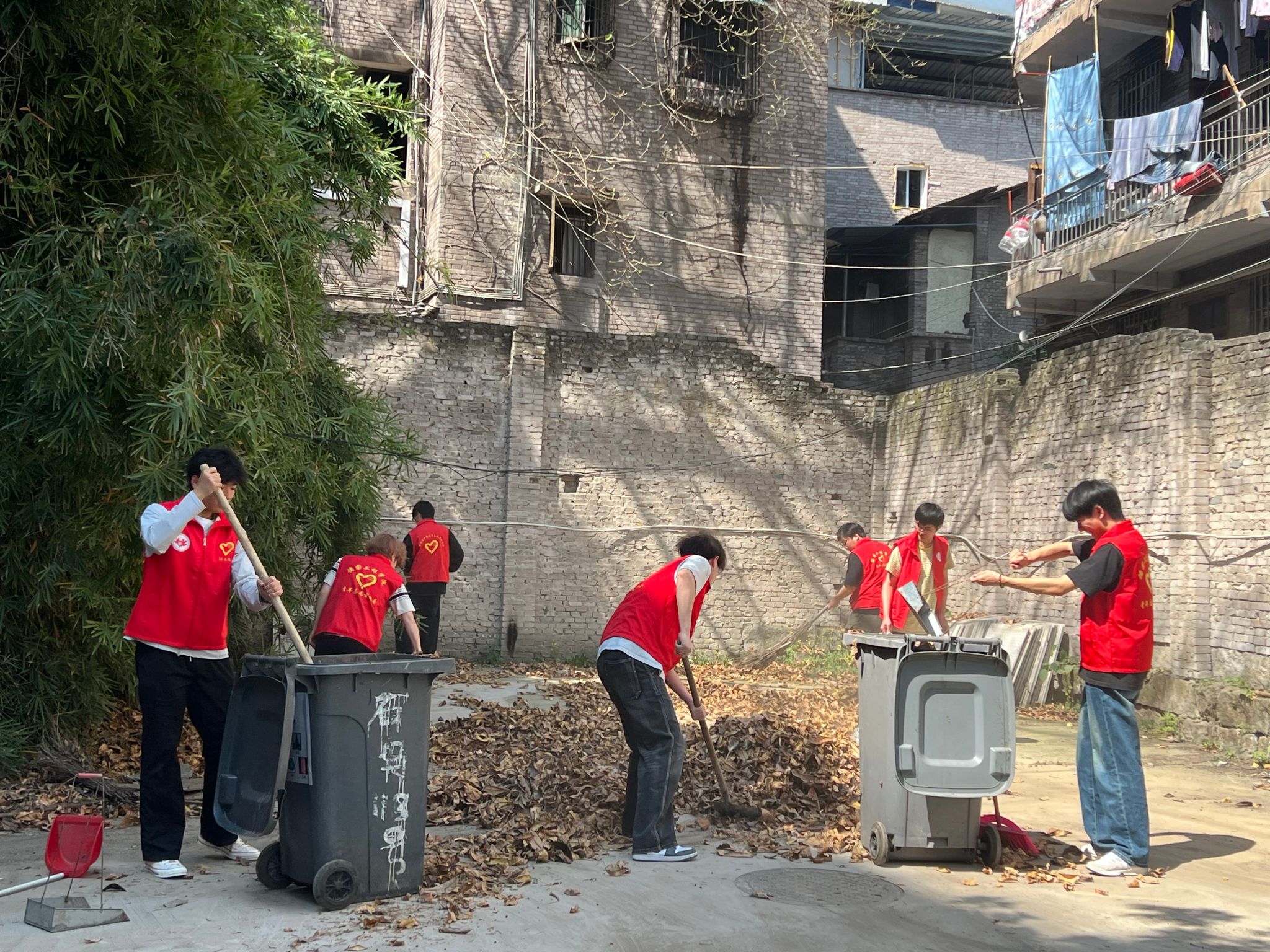 清晨的阳光透过树叶的缝隙,洒在养老院的院子里,老人们或坐或立,脸上洋溢着期待的笑容。志愿者们一到养老院,便迅速分组,有的帮助老人打扫庭院的垃圾与落叶,有的陪老人聊天解闷,还有的为老人表演节目、唱歌跳舞,现场气氛温馨而热烈。