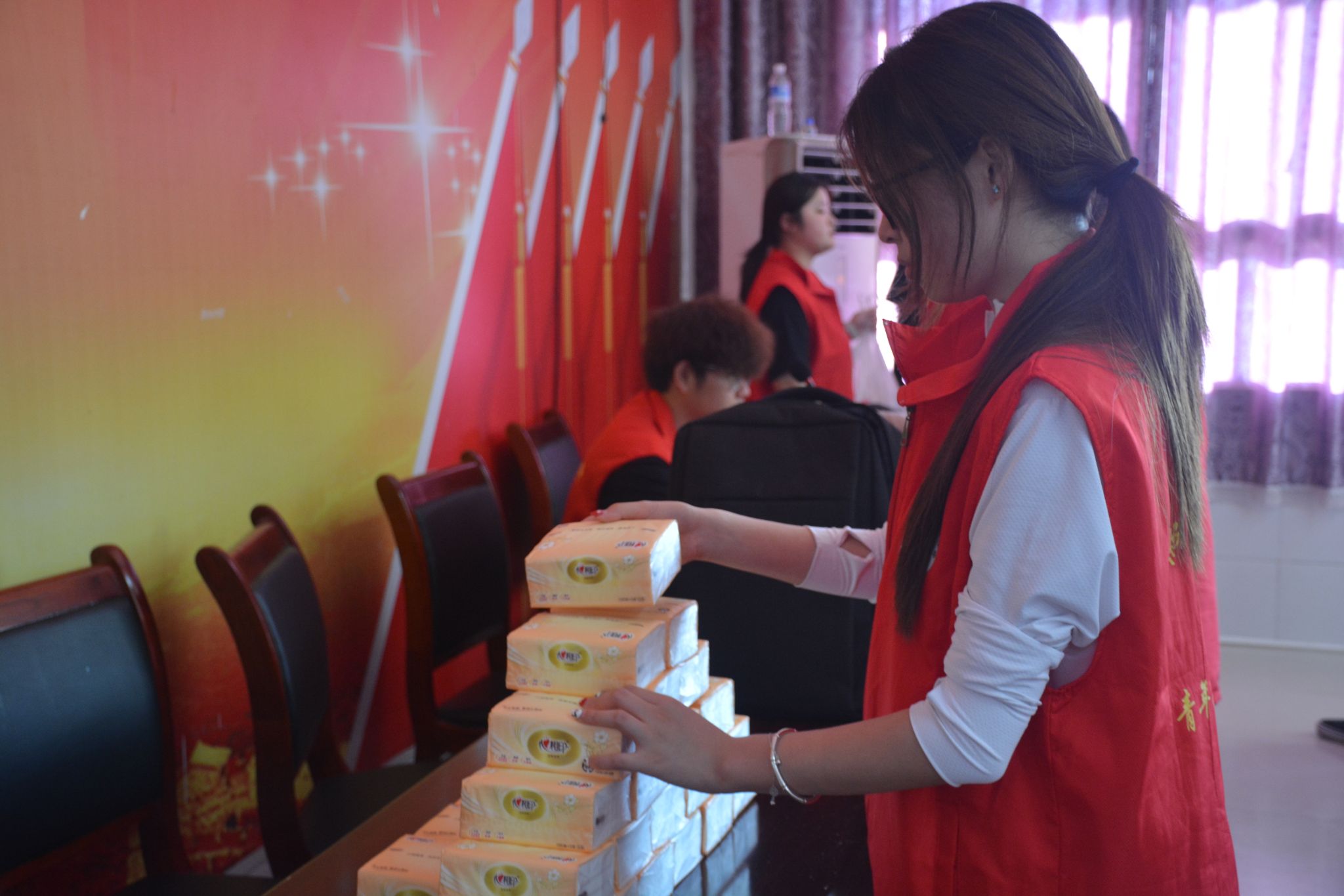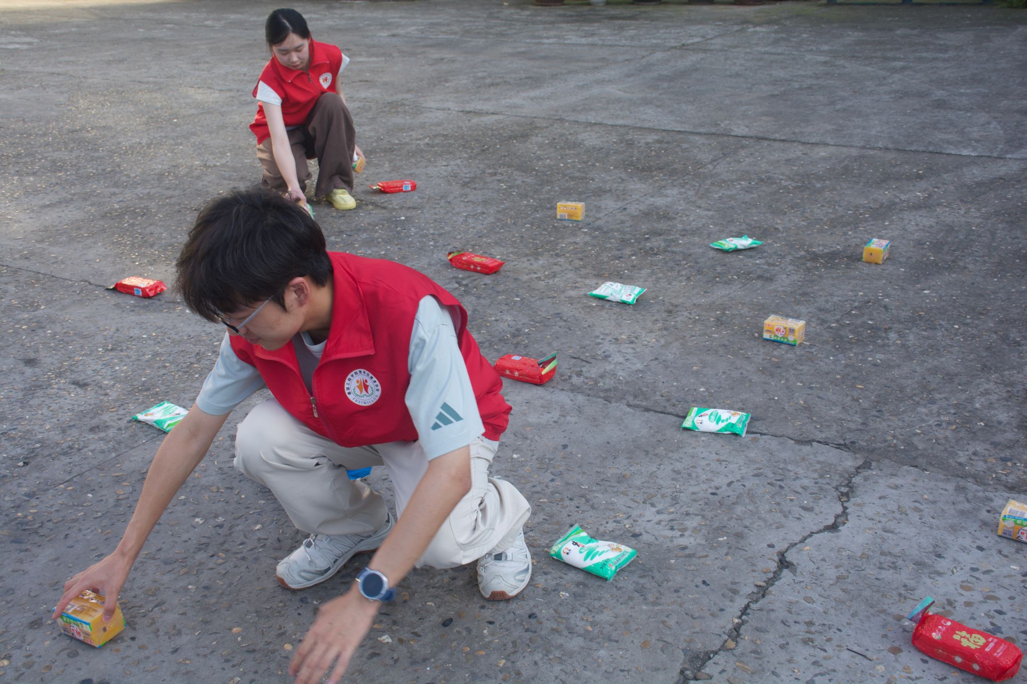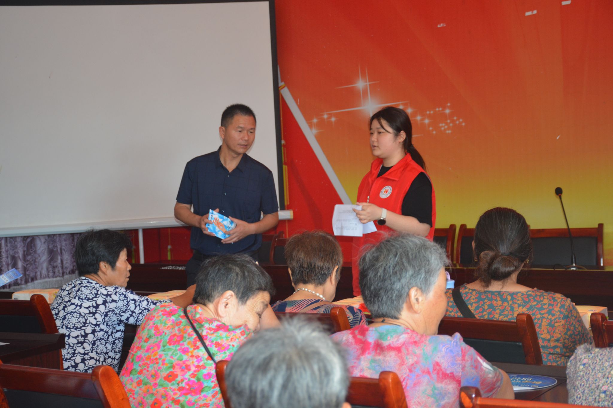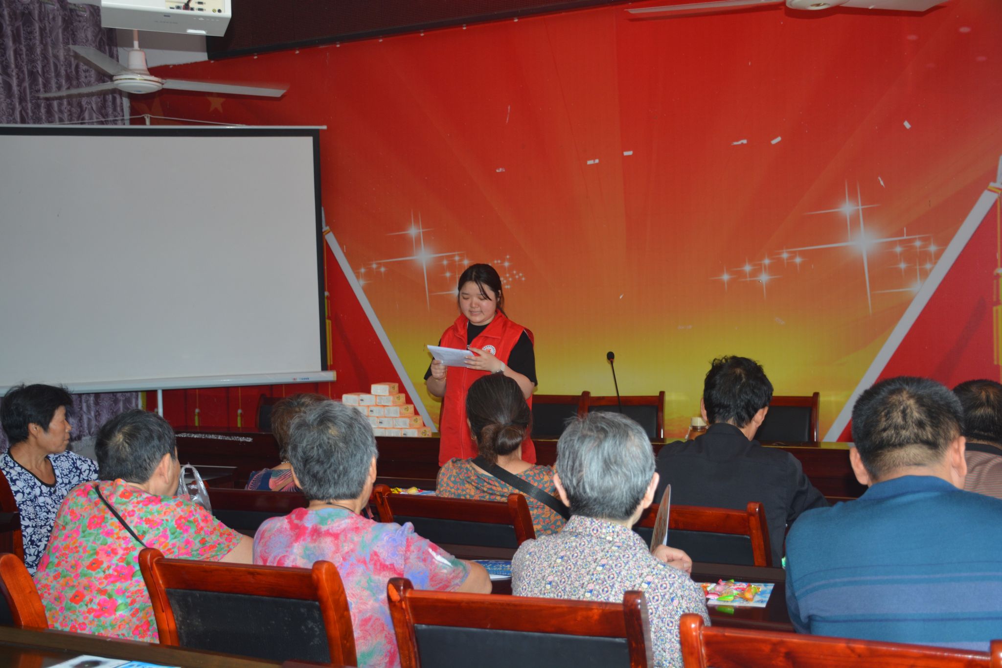 清晨7:30,志愿队的队员们就已抵达大岗村,开启了紧锣密鼓的筹备工作。一部分队员直奔村委会会议室,专注于调试投影仪、麦克风等设备,反复确认课件播放是否流畅、声音是否清晰,为讲座的顺利进行做好技术保障;另一部分队员则来到会议室下方的空地上,组织起趣味套圈活动,提前吸引村民到场。套圈礼品为洗衣粉、肥皂、盐等实用的生活用品,老人们兴致勃勃地参与其中,现场早早便热闹起来。