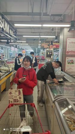北京时间11月2日下午两点,我们采购小分队已经在校门口集合完毕,依次有序的坐车去往超市进行采购。我们采购小组分成三队,一队负责采购肉食,二队负责采购素食,三队则负责吃饭中的必需品,一声令下,我们都朝着自己的目标前往,长达一个半小时的采购最终终于完成了,我们于下午四点半回到学校。