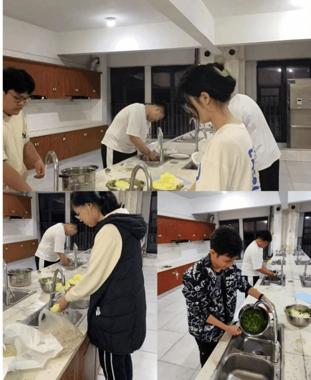 卫生是保障健康饮食的第一步,所以接下来是我们的清洗环节,当我们拿到食材的那一刻,我们每一个人都没有闲着,每一个人都主动承担了相应的工作,我们每一个人都有条不紊的按部就班进行清洗工作,我们分工明确,我们洗餐具的洗餐具,洗菜的洗菜,而当有缺少做菜所需要的东西的时候,也会有人主动站出来说让他自己去超市购买,虽然工作很繁琐,但是我们每一个人的脸都挂满了笑容,整个班级的氛围都其乐融融。